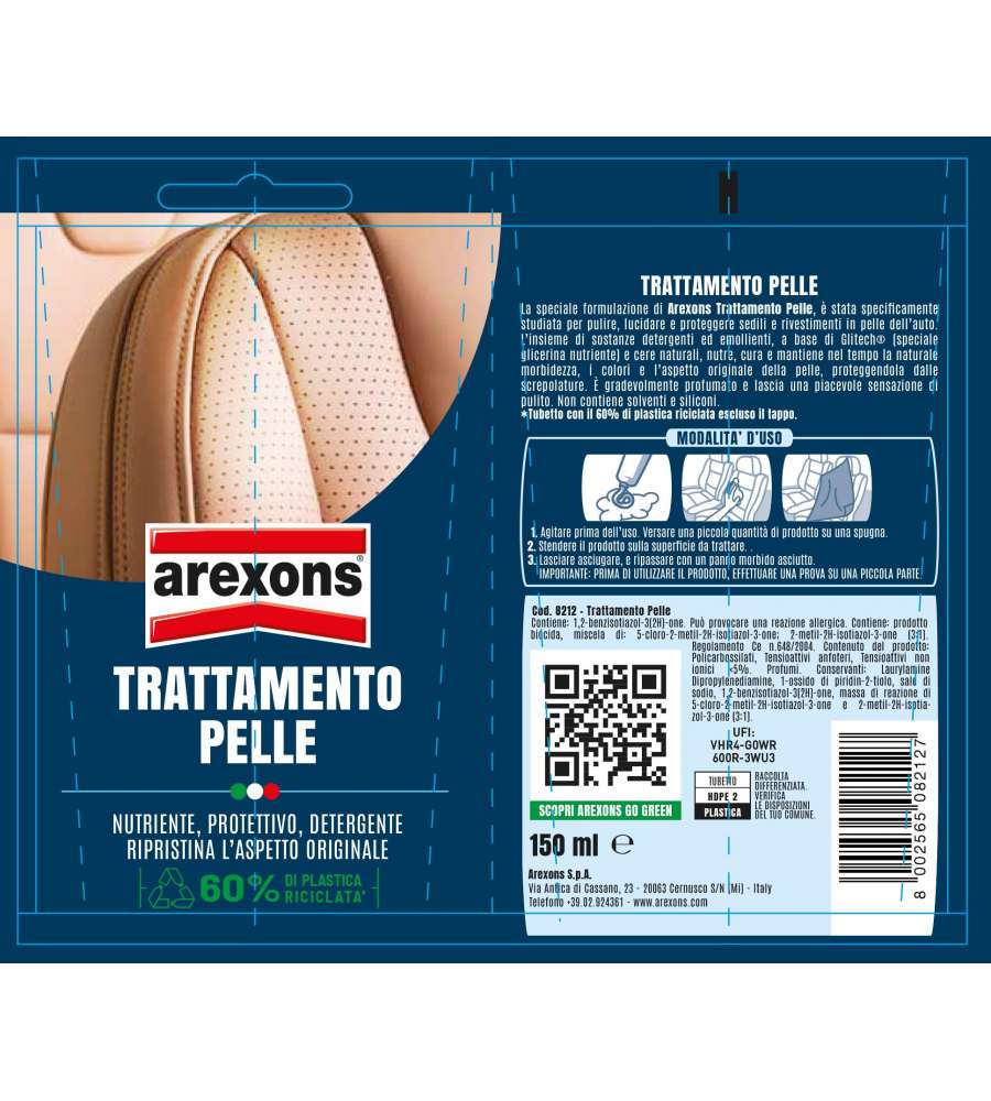 Descrizione: Trattamento Pelle Arexons 150ml, ideale per pulire e lucidare sedili e rivestimenti in pelle. Nutre e protegge con cere naturali, formula senza solventi. Facile da usare per una cura duratura.