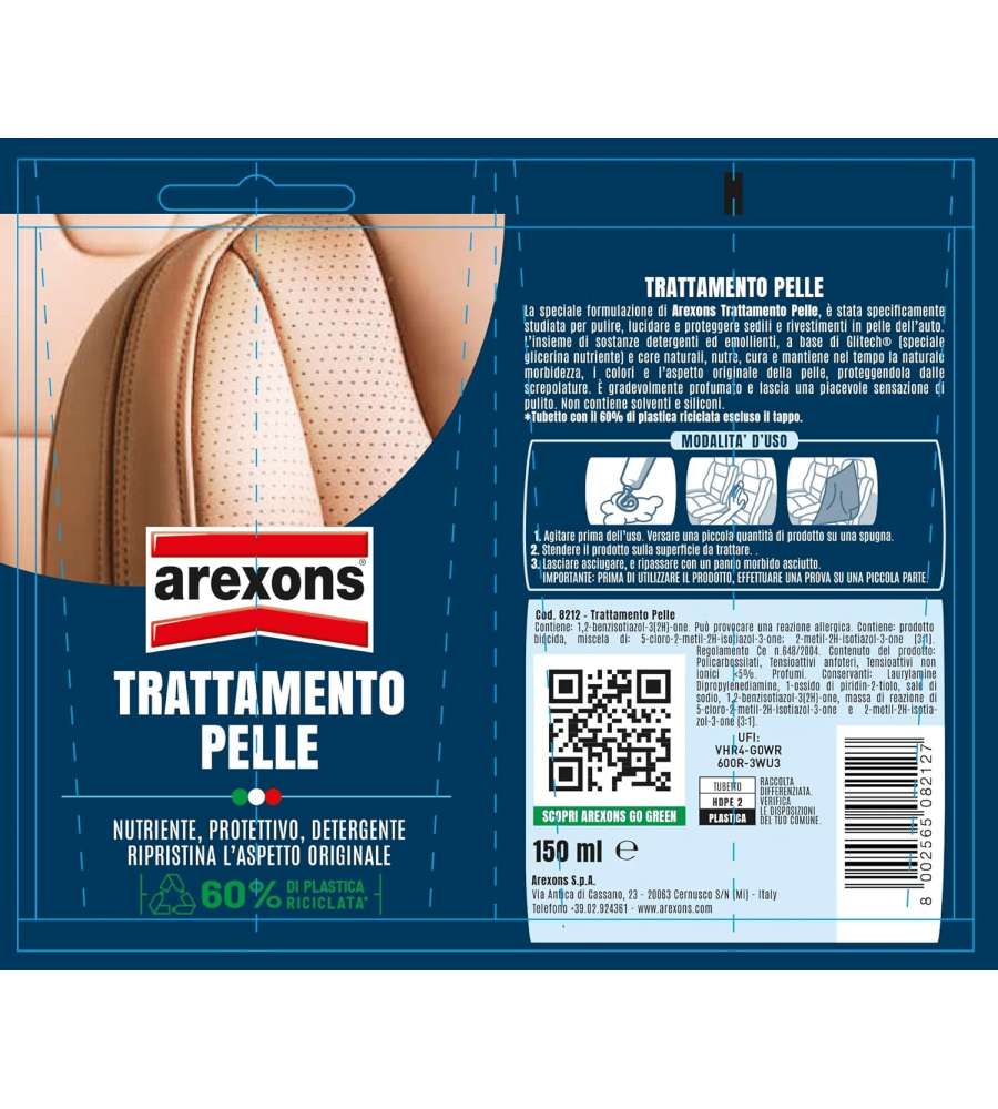 Descrizione: Trattamento Pelle Arexons 150ml: pulizia e lucidatura per rivestimenti in pelle. Nutre con cere naturali, formula senza solventi. Facile da usare con spugna, ideale per mantenere la pelle in ottime condizioni.