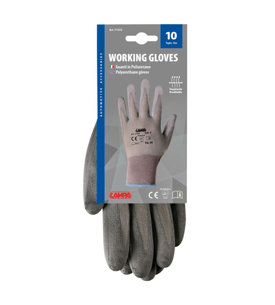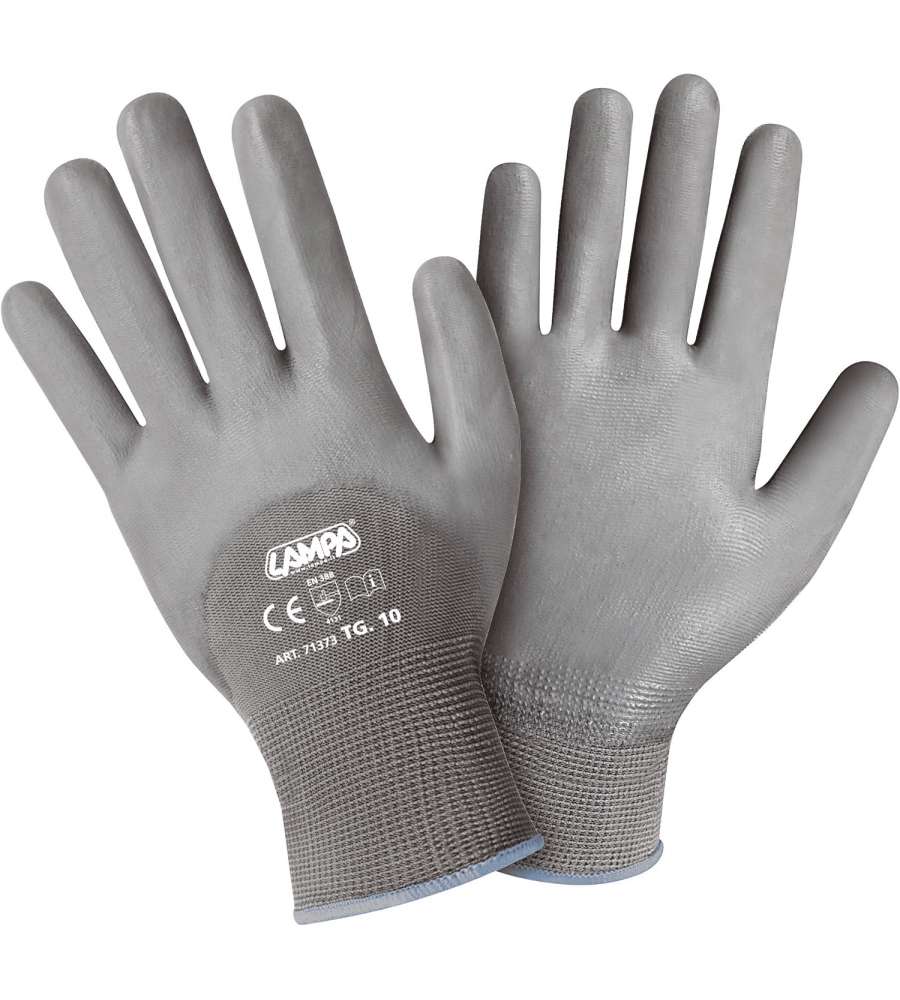 Descrizione: Guanti in poliuretano LAMPA, taglia 10, ideali per lavoro e protezione. Leggeri, resistenti e antinfortunistici, offrono una presa sicura e comfort. Perfetti per conduzione di automezzi, carico e scarico merci, settore agricolo ecc.