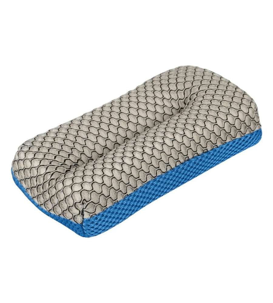 Spugna in microfibra con doppia superficie abrasiva. Lato grigio per rimuovere sporco da paraurti e carrozzeria, lato blu per vetri e specchi. Dimensioni compatte 16x9x3 cm, ottima presa e super efficace contro insetti e resina.Confezione:
