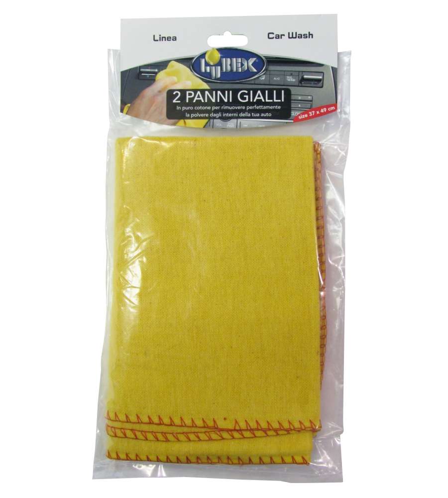 Panni multiuso in puro cotone, confezione da 2 pezzi, dimensioni 37x49 cm. Colore giallo per facile identificazione, ideali per rimuovere polvere dagli interni auto. Lavabili in lavatrice, pratici e funzionali.Destinazione d'uso: