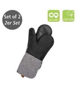 I guanti da forno Ada di WENKO combinano funzionalità e stile per offrire la massima sicurezza in cucina. L'asta extra lunga non solo protegge gli avambracci, ma estende anche la protezione fino a parte del braccio, garantendo così una sicurezza superiore durante la cottura o la grigliata. Il silicone di alta qualità assicura resistenza al calore e una presa ferma, permettendo di maneggiare pentole, padelle e altri utensili caldi senza rischio. Il design elegante e moderno, unito alla praticità di utilizzo, rende questi guanti un accessorio indispensabile in ogni cucina moderna.