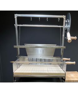 L’innovativo serbatoio della legna consente di alimentare le braci in modo costante, il nostro sistema sali scendi tutto in acciaio inox con freno assistito consente alla griglia, anche essa in acciaio inox di sollevarsi.