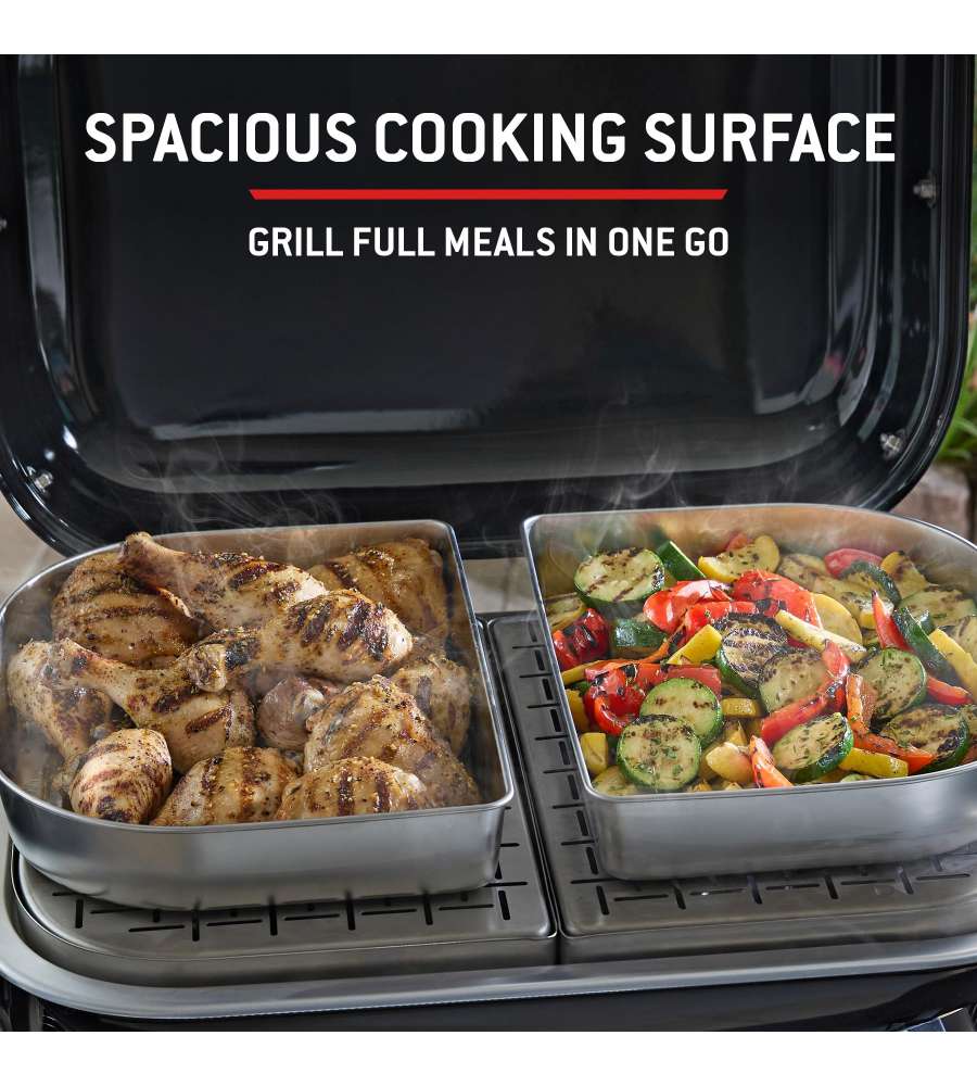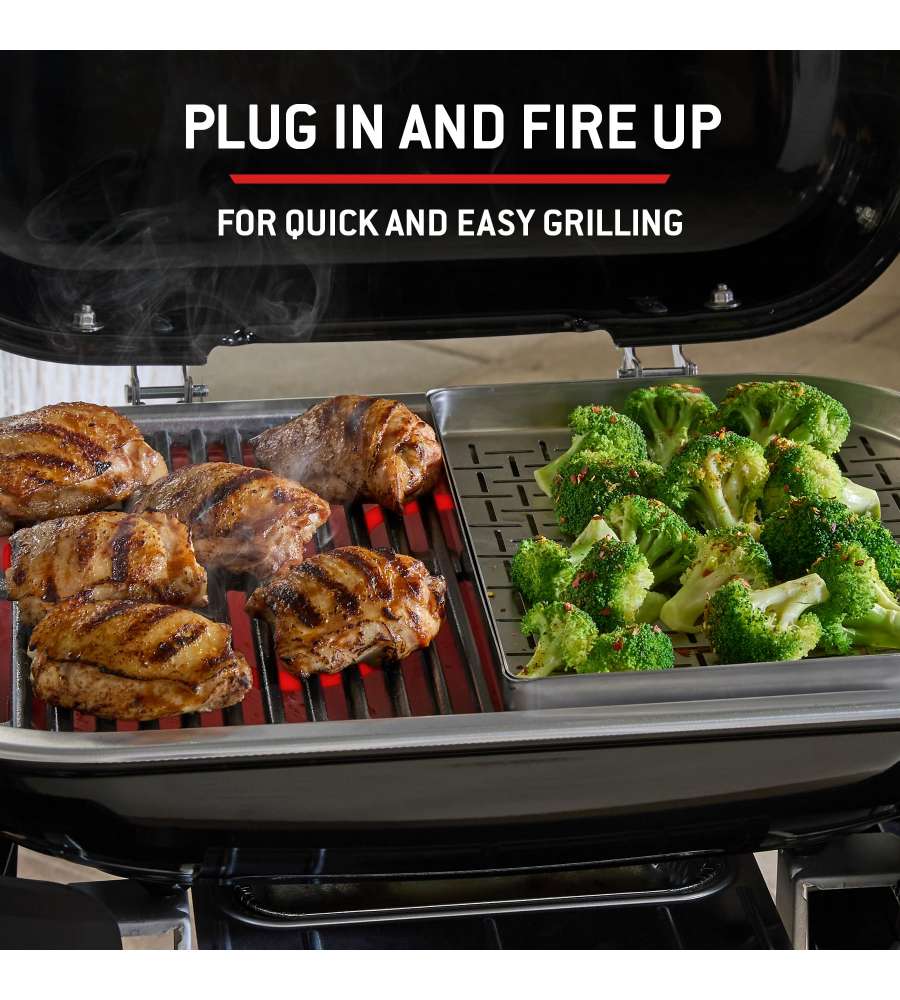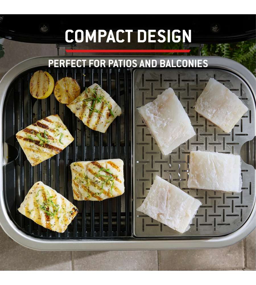 Descrizione: Scopri il barbecue elettrico LUMIN COMPACT di Weber, ideale per cucinare all'aperto. Raggiunge oltre 315 °C, offre versatilità di cottura e mantiene i tuoi piatti caldi per gli ospiti. Design salvaspazio!