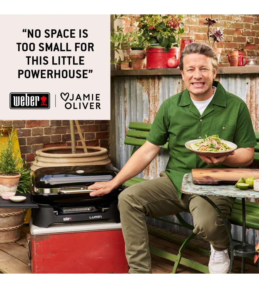 Grazie al calore elevato e alla grande versatilità, il barbecue elettrico Lumin* di Weber porta la cucina all'aperto in città a nuovi livelli. Questo barbecue elettrico multifunzione raggiunge temperature superiori ai 315 °C e consente agli amanti delle striature di ottenere una rosolatura di alta qualità, mentre l'aggiunta dell'affumicatura migliora ulteriormente il sapore che gli ospiti tanto desiderano. Parlando di ospiti soddisfatti, il barbecue elettrico Lumin Compact può tenere in caldo il cibo in modo che tutti possano servirsi da soli (e tornare per servirsi nuovamente). Moderno e pratico, il nuovo barbecue elettrico Lumin Compact di Weber è progettato sia per soddisfare i tuoi gusti che per adattarsi al tuo spazio all'aperto. *LUMIN è un marchio registrato di Weber-Stephen Products LLC ed è un marchio depositato in fase di esame negli Stati Uniti e in altri Paesi.