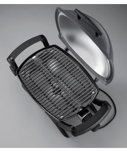 Barbecue elettrico Weber Q 1400, colore grigio antracite. Dimensioni: 62 x 66 x 49 cm, peso 11 kg. Griglia in ghisa d'alluminio, superficie di cottura 43 x 32 cm. Ideale per cotture uniformi e pratiche.Dimensioni area cottura: