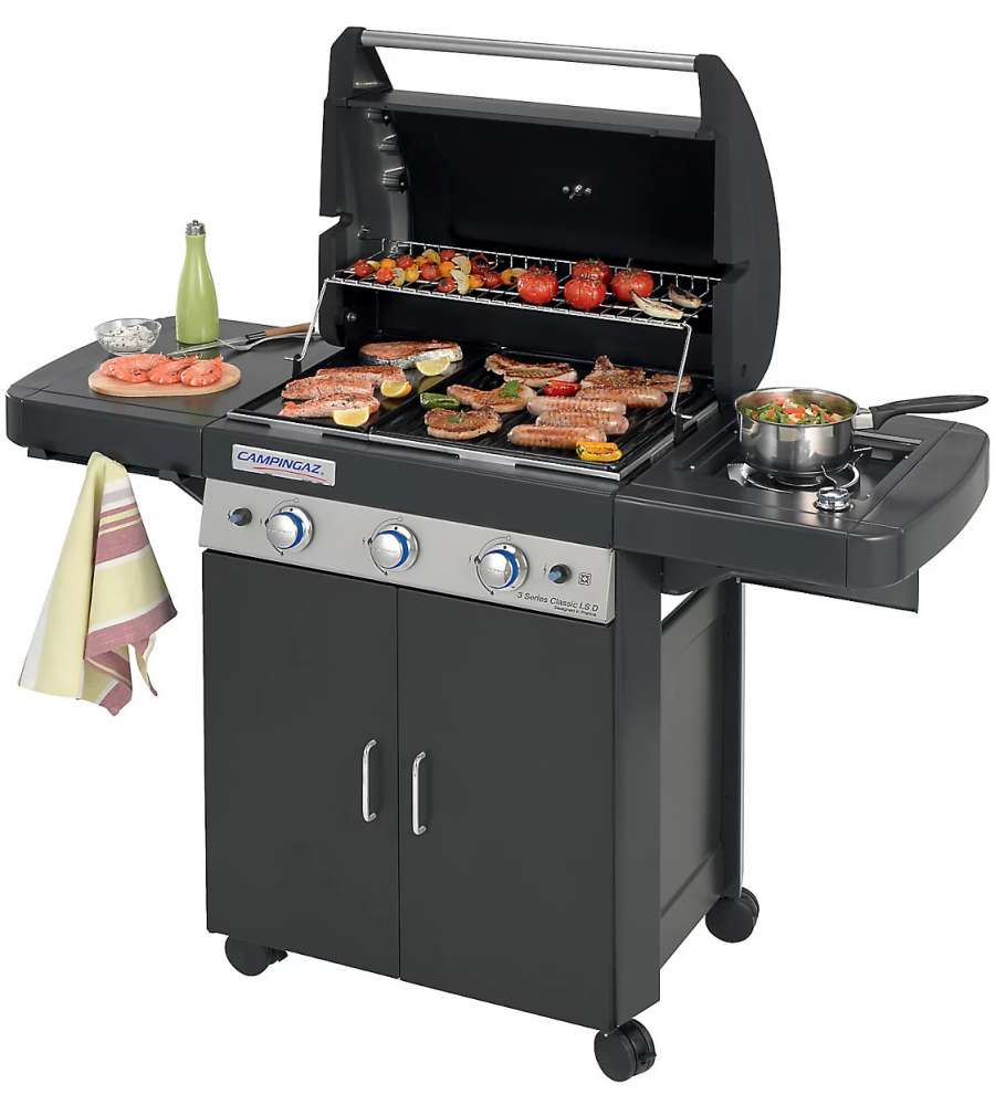 Descrizione: Scopri il Barbecue Campingaz 3 Series Classic LS Dark, dotato di 3 bruciatori in acciaio inox e superficie di cottura 61x46 cm. Ideale per grigliare carne, pesce e verdure, con sistema InstaClean® per una pulizia facile.