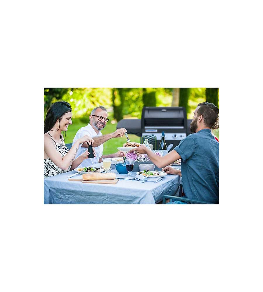 Cucinare per una festa in famiglia o con amici non sarà un problema, con questo potente BBQ a 3 bruciatori. Caratterizzato dall’ampia superficie di cottura, non teme alcun numero di ospiti! È dotato di griglia e piastra per poter preparare contemporaneamente cibi diversi come carne, pesce, verdure e formaggi. Massima versatilità grazie all’innovativo Culinary Modular (optional), che permette di inserire nell’apposito alloggio una pietra per pizza, un wok ed altri accessori (venduti separatamente) rendendo il barbecue una vera e propria cucina professionale da esterno. Il sistema InstaClean® infine, consente di lavare tutto in lavastoviglie lasciandoti solo il piacere di grigliare. Dimensioni superficie di cottura 61 x 46 cm (2.800 cm²).