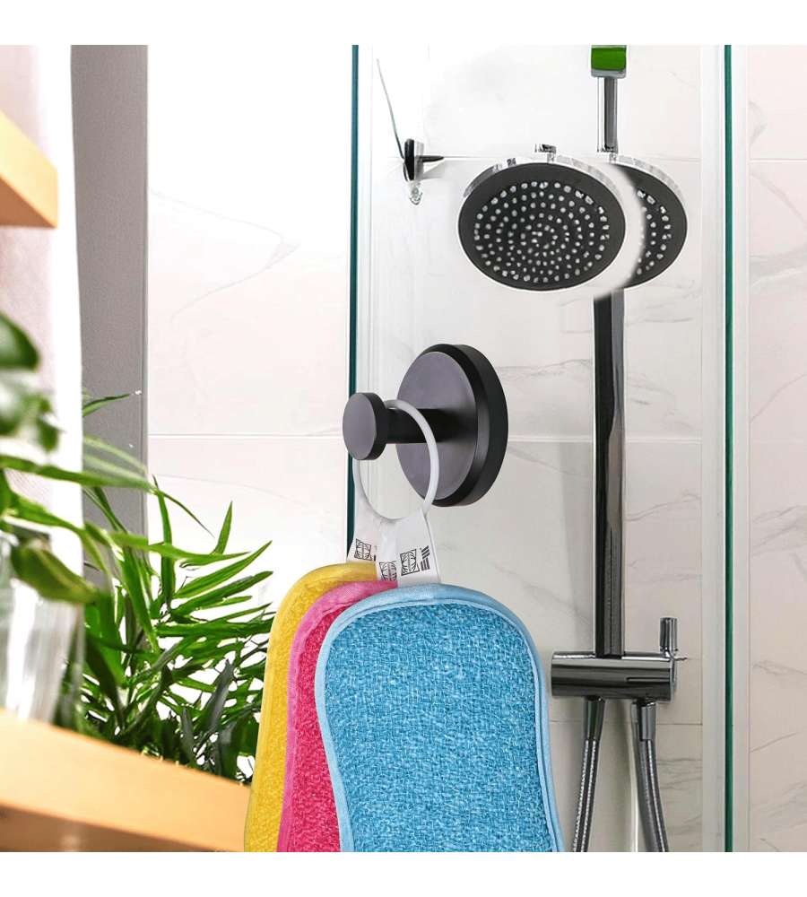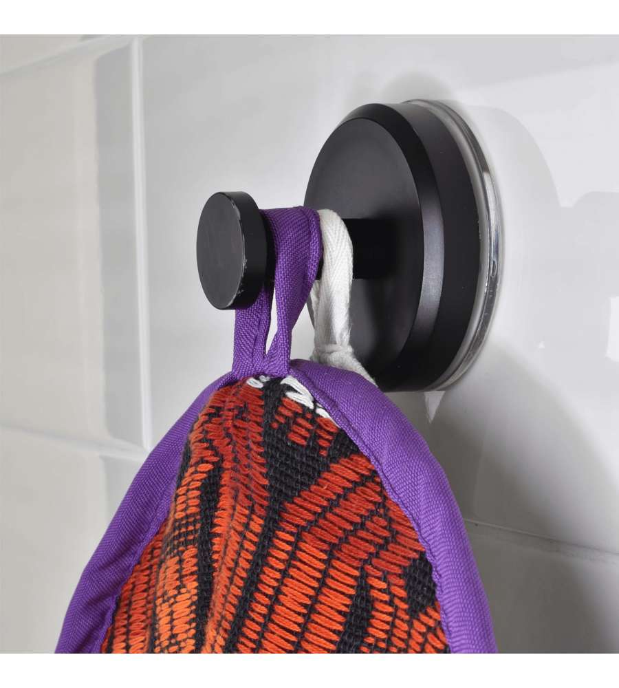 Descrizione: Gancio a ventosa STICK & LOCK NERO di Euromarketing. Facile applicazione su vetri e pareti lisce, resistente all'acqua. Include supporto adesivo per superfici ruvide. Ideale per bagno e ambienti umidi.