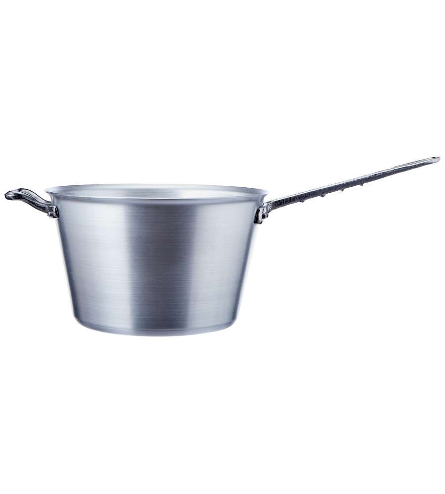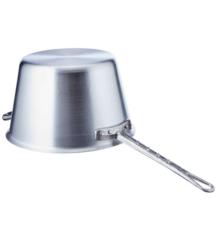 Descrizione: Paiolo in alluminio puro 99% Agnelli, diametro 26 cm. Ideale per cottura su gas, elettrica e radiante. Manico laterale per una presa sicura, perfetto per preparare polenta e stufati.