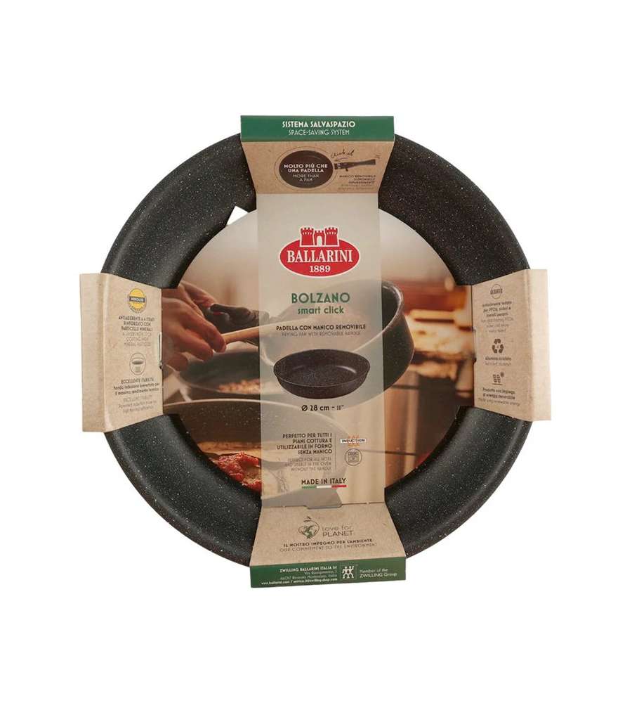Descrizione: Scopri la padella Bolzano di Ballarini, diametro di 28 cm in alluminio con spessore di 3,2 mm. Rivestimento antiaderente Granitium, adatta a induzione. Manico Smart Click. Cottura perfetta!