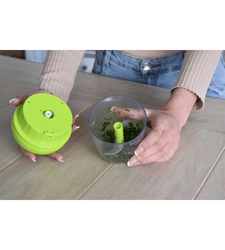 Il Push N Chop è un mini tritatutto elettrico progettato per semplificare le tue attività in cucina. Grazie alla sua alimentazione tramite ricarica USB, è possibile utilizzarlo ovunque senza dover cercare una presa di corrente. La sua compattezza lo rende facilmente riponibile e perfetto per le piccole cucine, mentre il design intuitivo con un semplice pulsante consente di tritare in pochi secondi vari ingredienti. Che tu stia preparando un sugo fresco o un'insalata, questo tritatutto è la soluzione ideale per chi cerca praticità e funzionalità nella propria routine culinaria.