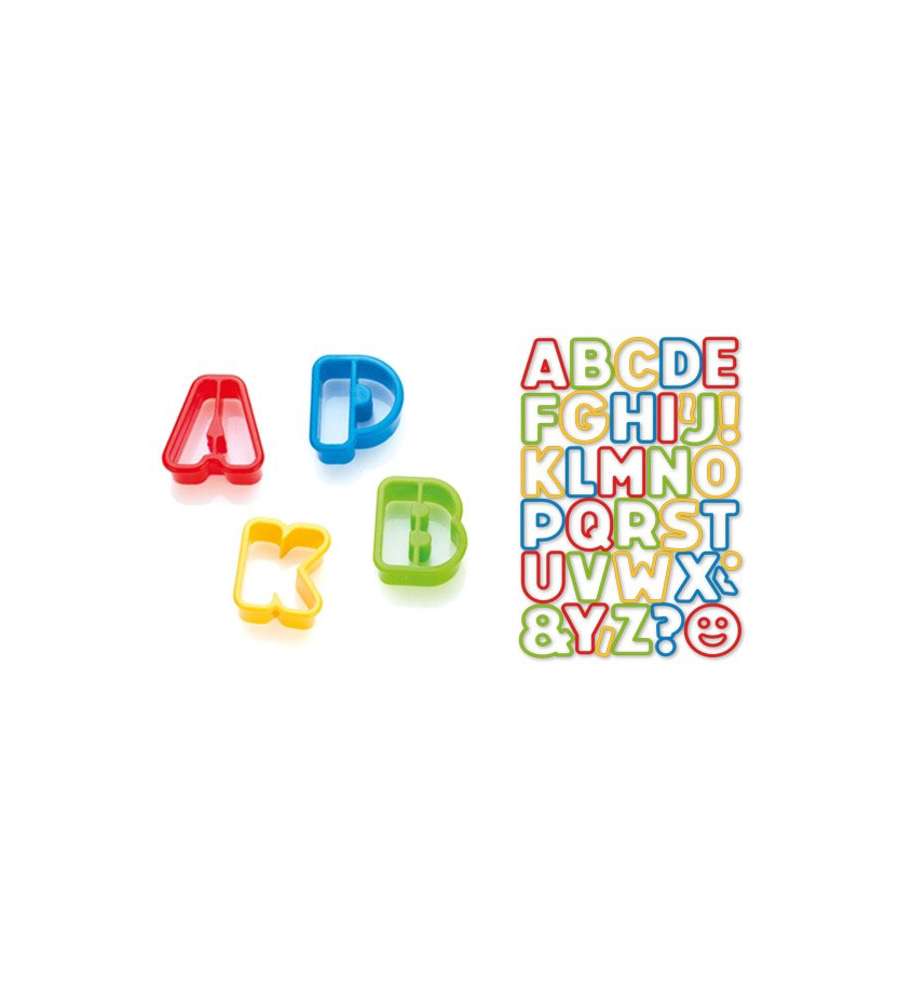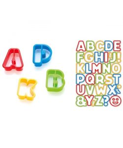 Ideali per tagliare nell'impasto biscotti a forma di lettere, accenti e punteggiatura; il set contiene 34 tagliabiscotti. Prodotti in plastica resistente di alta qualità. Lavabili in lavastoviglie.