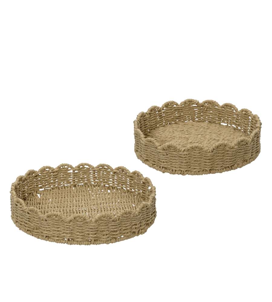 Vassoio da portata rotondo in carta con bordo ondulato, ideale per interni. Dimensioni: 25x4 cm. Perfetto per servire antipasti, dessert e bevande. Leggero e pratico, aggiunge un tocco di eleganza.Uso interno: