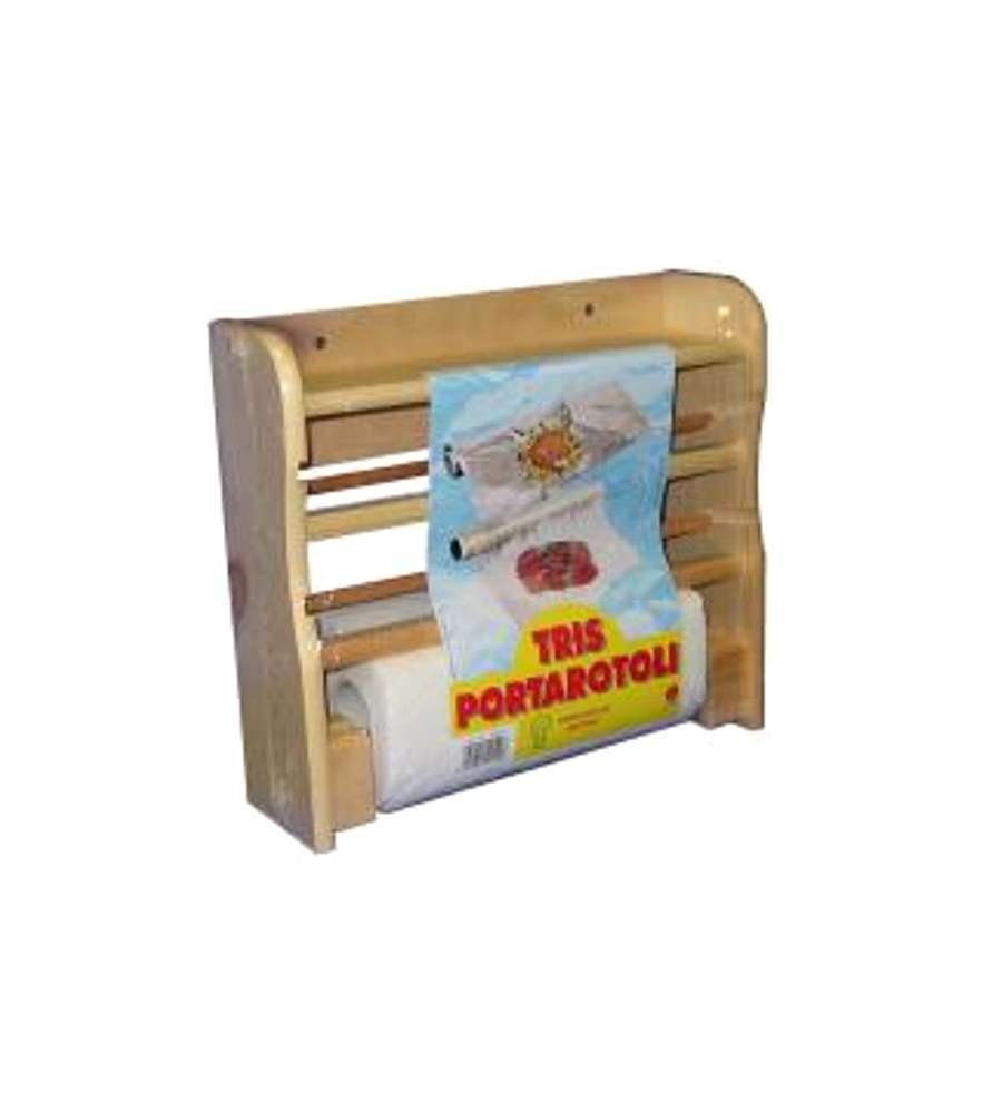 Portarotolo Legno A Parete 3 Naturale Cm 33X9 H 29