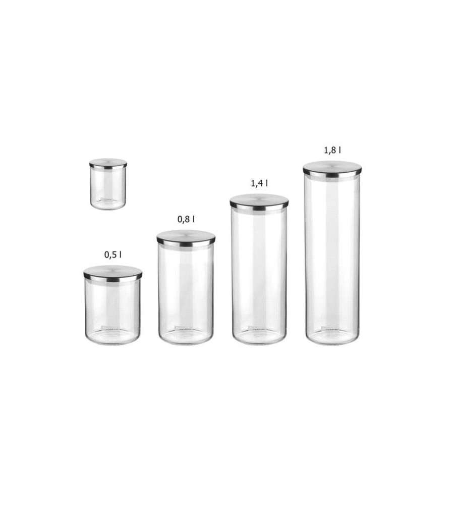 Descrizione: Barattolo in vetro borosilicato da 0,5L con profilo in acciaio inox e guarnizione in silicone. Ideale per conservare alimenti, lavabile in lavastoviglie (non il coperchio in plastica).