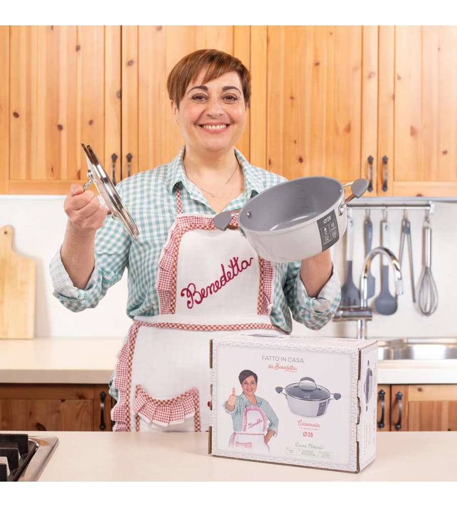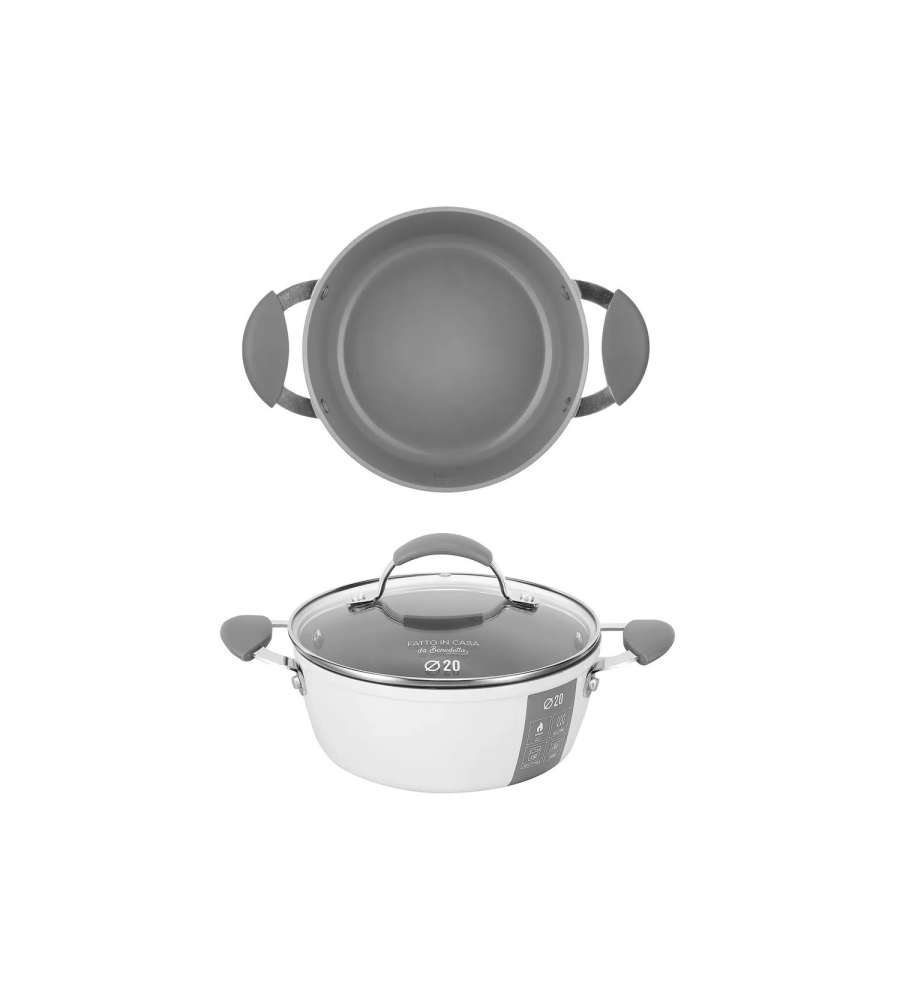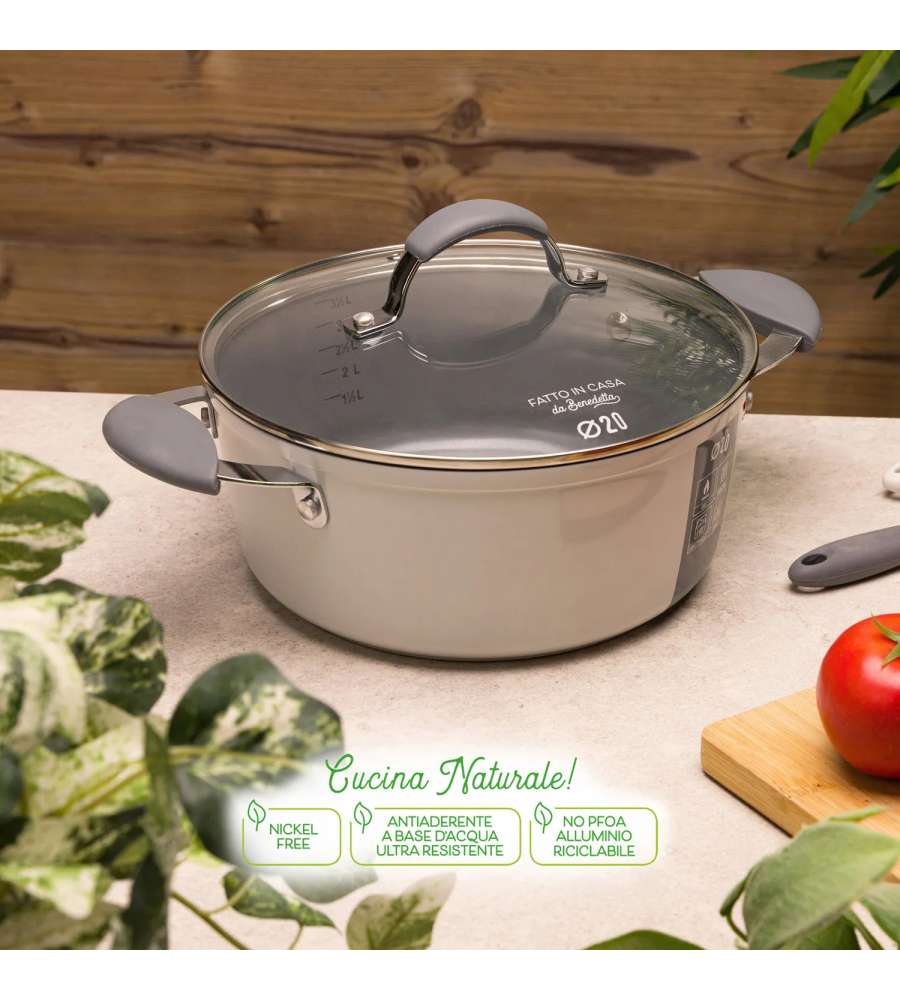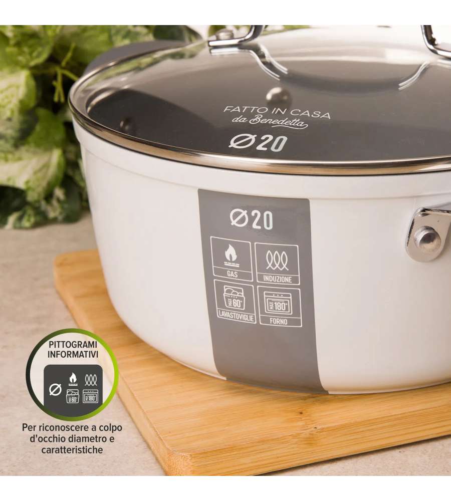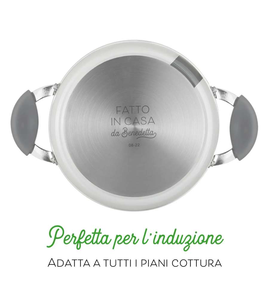 Descrizione: Casseruola induzione 20 cm Fatto in casa da Benedetta con coperchio in vetro. Rivestimento antiaderente ceramico a base d'acqua, fondo full induction per una cottura veloce e salutare.