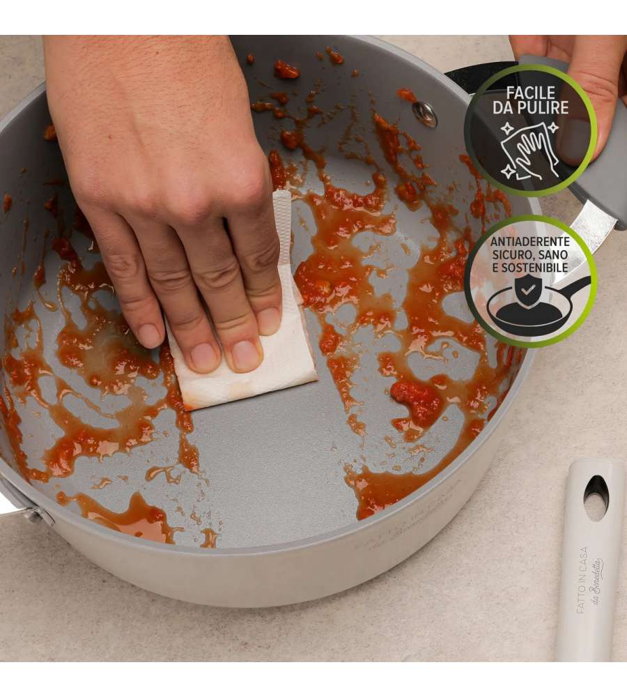 La casseruola Fatto in Casa Benedetta è l'ideale per chi cerca un prodotto versatile e pratico in cucina. Grazie al suo rivestimento antiaderente in ceramica, è possibile cucinare in modo sano e senza eccesso di grassi, mantenendo intatti i sapori delle pietanze. Il fondo full induction garantisce una cottura rapida e uniforme, rendendola perfetta per tutti i tipi di piani cottura, inclusi quelli a induzione. Inoltre, il coperchio in vetro temperato consente di controllare la cottura senza dover sollevare il coperchio, riducendo la dispersione di calore. Facile da pulire e lavabile in lavastoviglie, questa casseruola è un must-have per ogni appassionato di cucina.