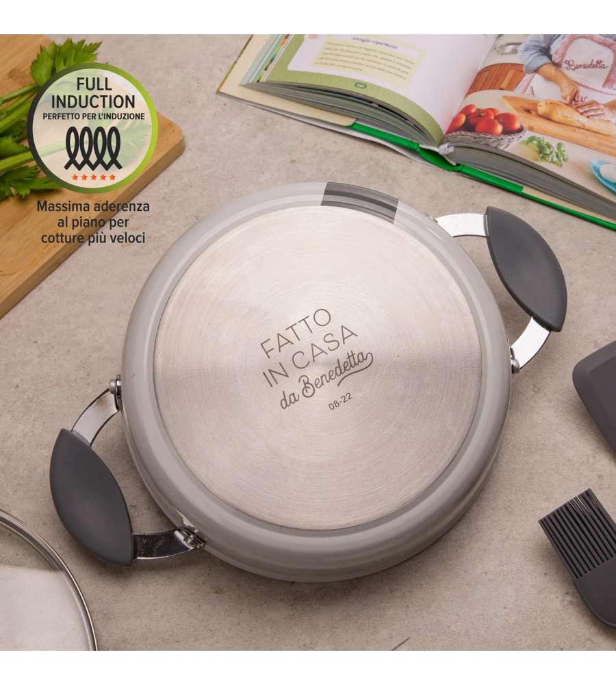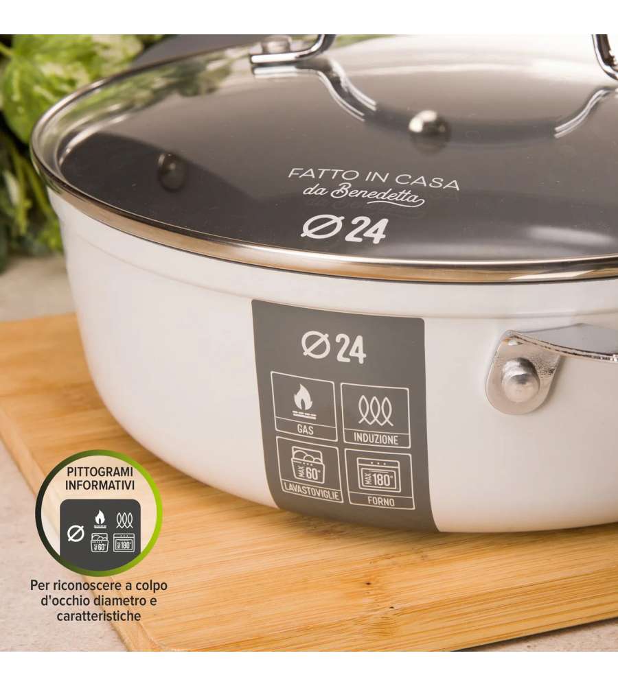 Descrizione: Scopri il tegame induzione 24 cm di FATTO IN CASA da Benedetta: antiaderente, in alluminio, con coperchio in vetro. Perfetto per cotture sane e rapide, lavabile in lavastoviglie e adatto al forno fino a 180°C.