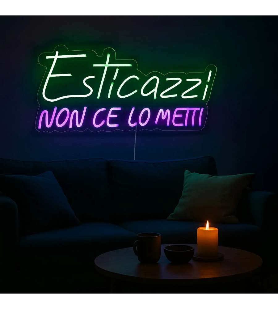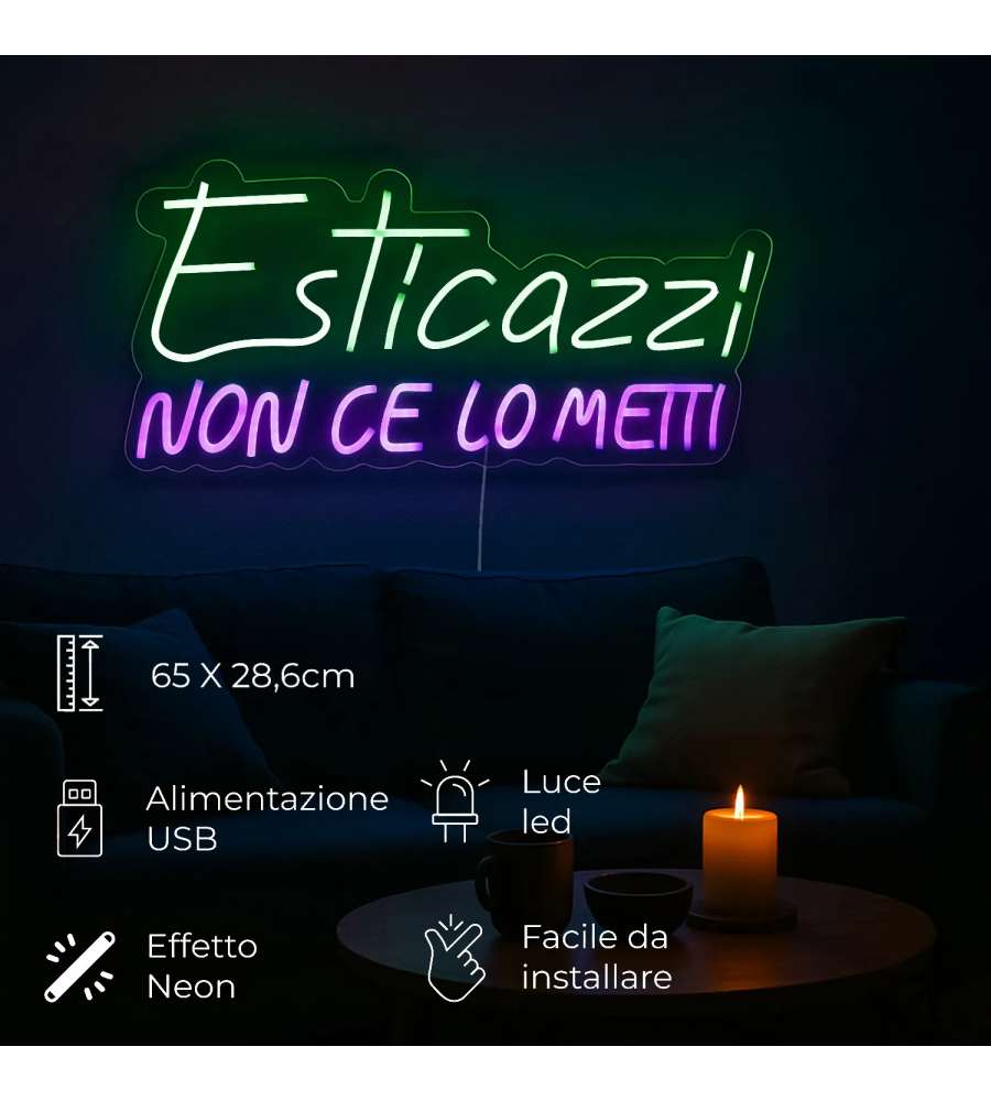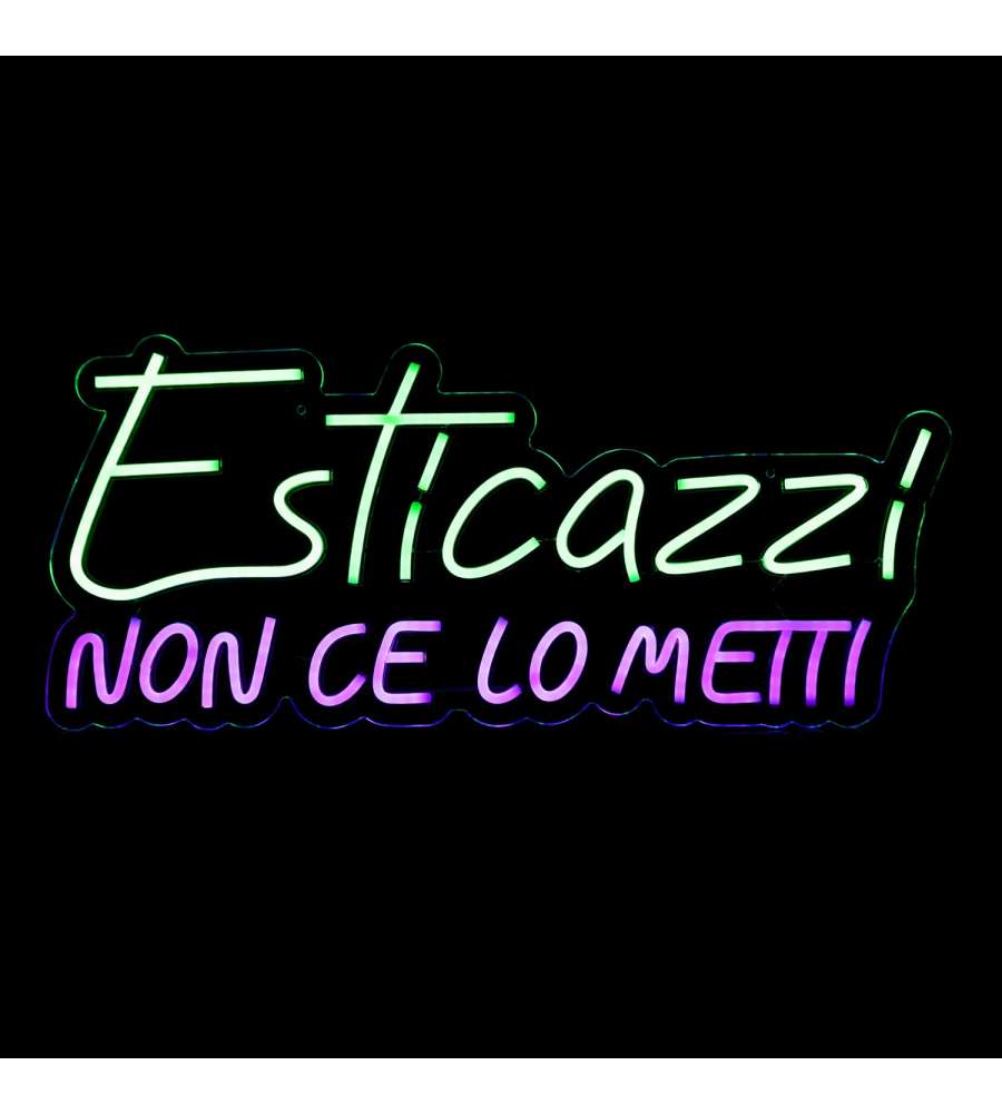 Insegna luminosa con effetto neon "Esticazzi non ce li metti", ideale per bar, negozi simpatici e camere. Facile da installare, alimentata via USB. Colore multicolore, dimensioni 65x28,6 cm. Un regalo originale per chi ama esprimere il proprio stile!Indicato per: