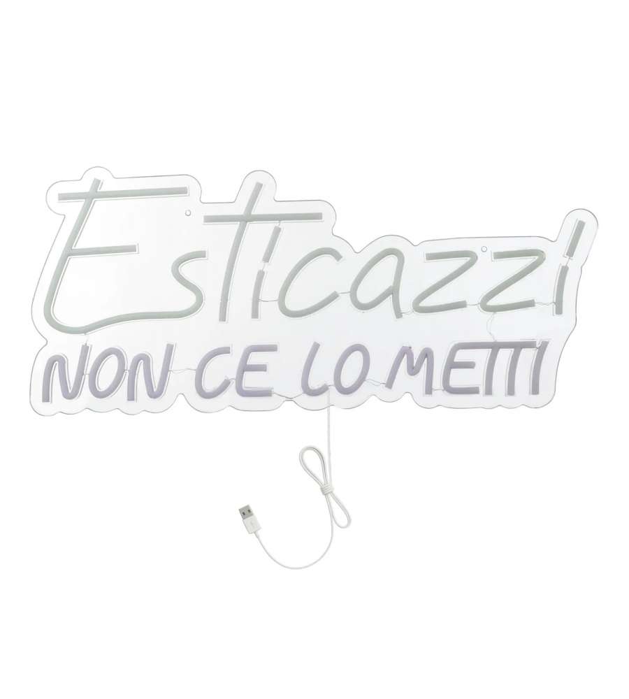 Descrizione: Insegna luminosa LED "Esticazzi non ce li metti" da appendere, perfetta per camere e bar. Illumina con effetto neon, facile da installare e alimentata via USB. Un regalo provocatorio e originale!