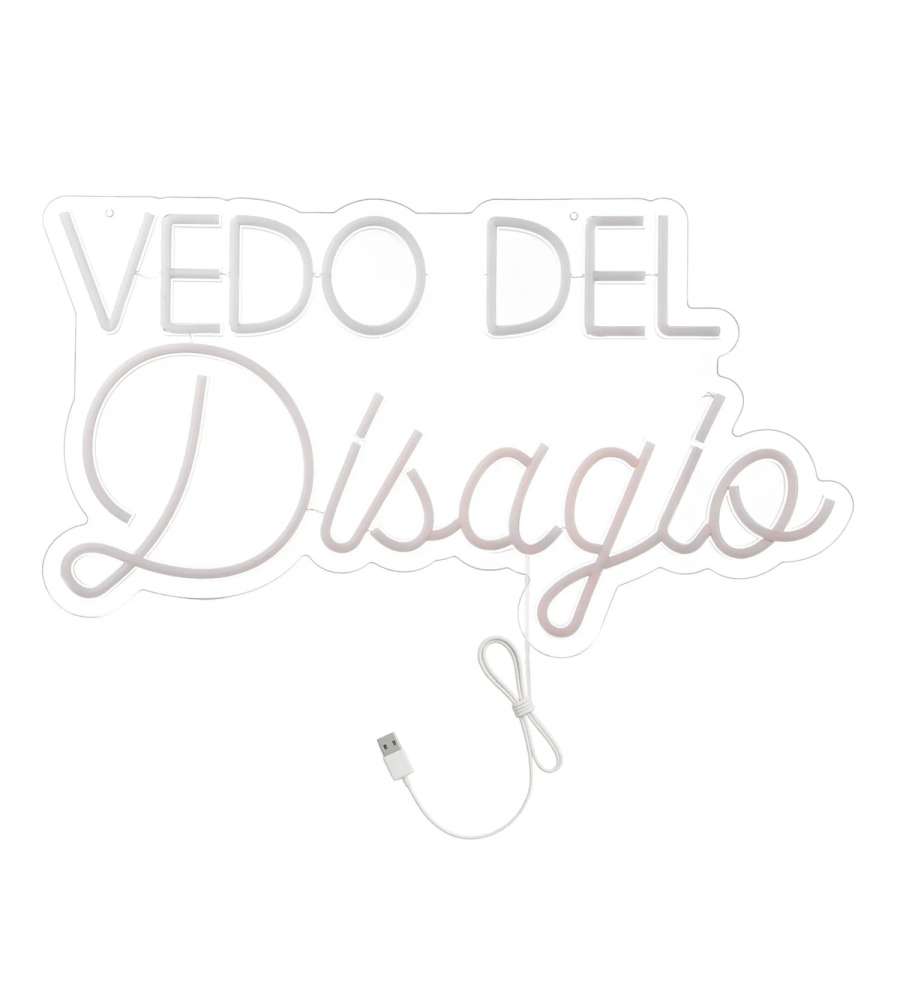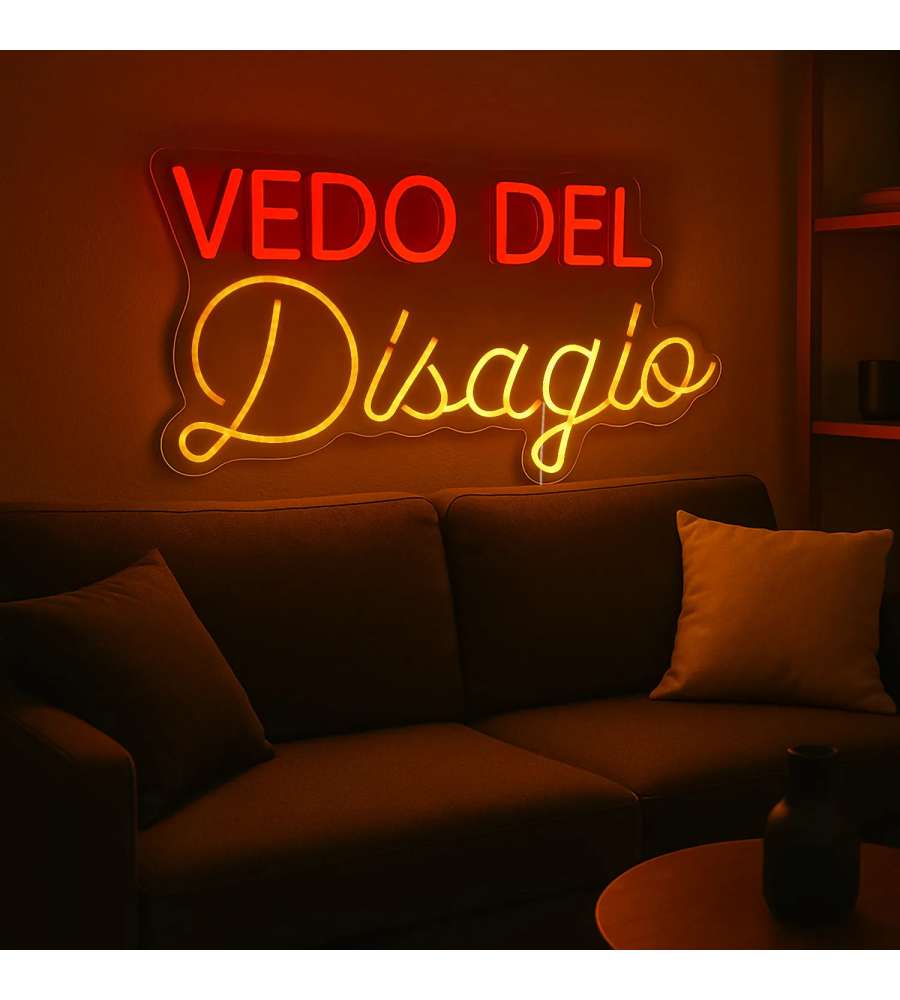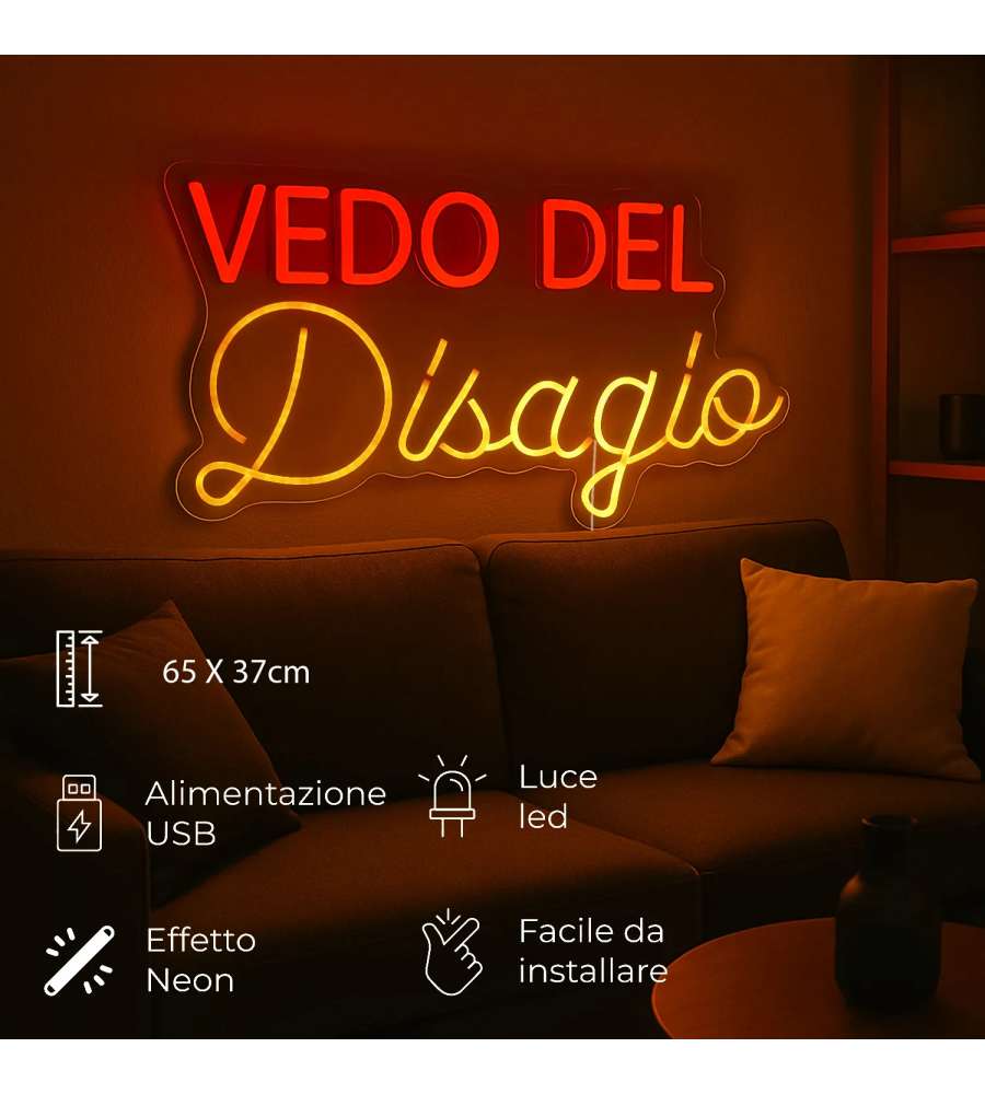 Descrizione: Illumina il tuo spazio con l'insegna luminosa "Vedo del disagio". Perfetta per bar, negozi e camere, questa scritta LED effetto neon è un'idea regalo originale, facile da installare e alimentata via USB.