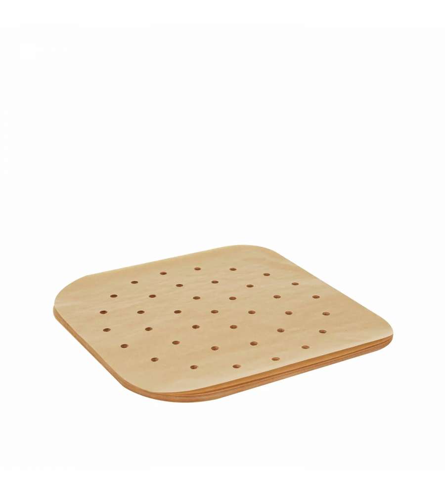 Kit da 120 fogli forati, misura 24x24 cm, antiaderenti e resistenti fino a 220 °C. Ideali per friggitrice ad aria, facilitano la cottura e la pulizia. Fori per una circolazione d?aria ottimale e cottura uniforme.Indicato per: