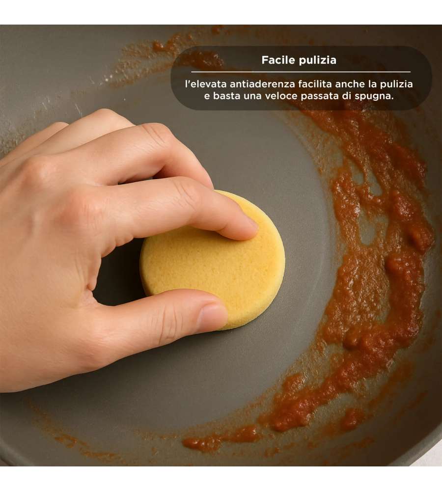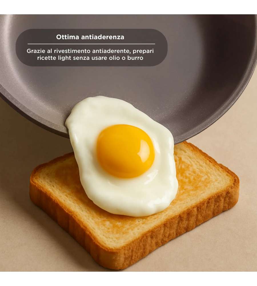 Questa padella antiaderente non è solo un accessorio da cucina, ma un vero e proprio alleato per chi desidera preparare piatti sani e gustosi. Grazie al rivestimento antiaderente a 2 strati privo di PFOA, potrai cucinare senza l'aggiunta di oli o burri, riducendo così il consumo di grassi e facilitando la pulizia. La struttura in alluminio pressofuso assicura una distribuzione uniforme del calore, permettendo una cottura perfetta e rapida. Che tu stia preparando una semplice omelette o un piatto più elaborato, questa padella si rivela versatile e sempre pronta all'uso. Inoltre, il salvapadella incluso è un'ottima soluzione per preservare il rivestimento, prolungando la vita della tua padella.