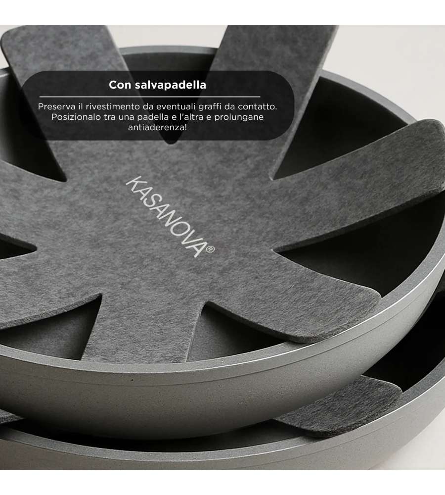 Descrizione: Padella antiaderente Kasa dello Stock da 28 cm, ideale per cotture leggere su induzione e tutti i piani. Include salvapadella per proteggere il rivestimento. Cottura uniforme e rapida.