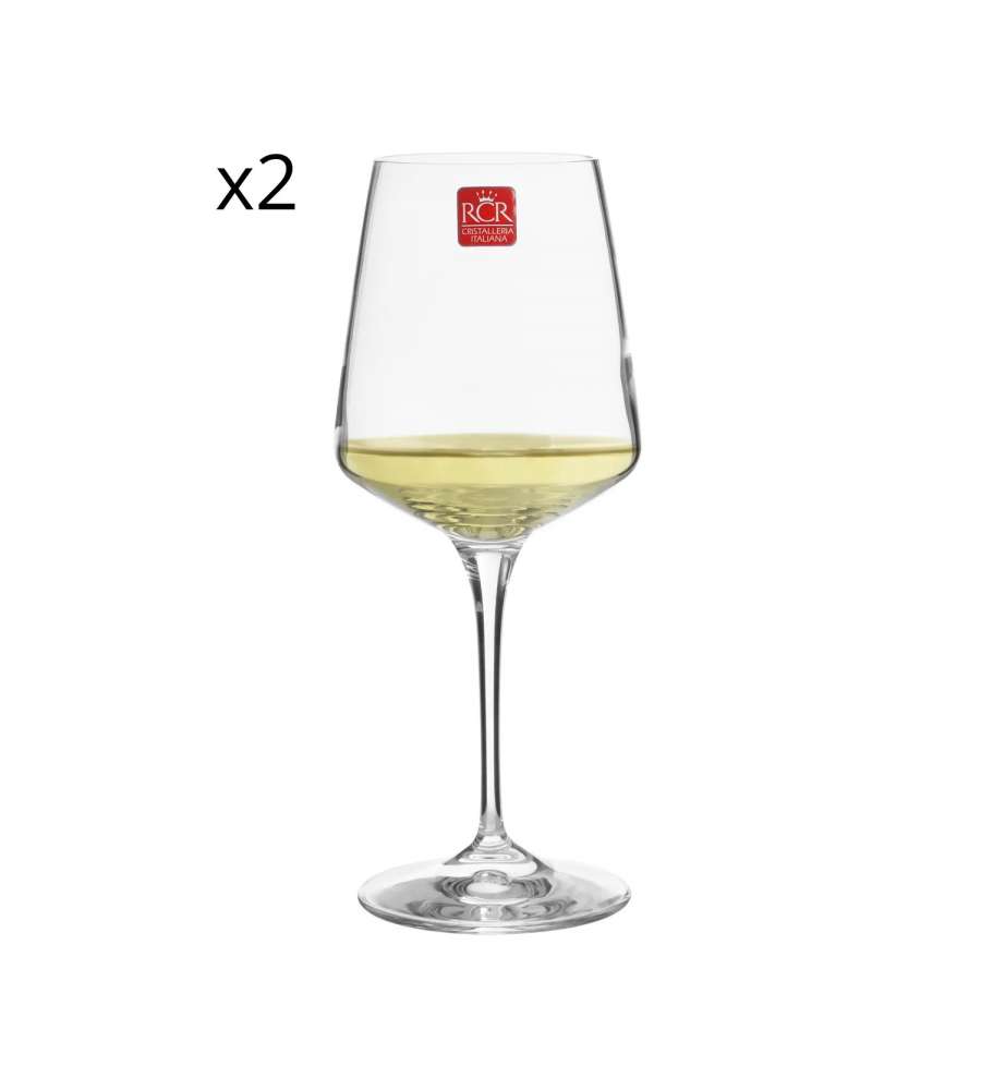 Set di 2 calici in vetro antiurto per vino bianco, eleganti e resistenti. Mantengono inalterati colore, sapore e odore del vino. Lavabili in lavastoviglie, stelo rinforzato per una presa sicura. Capacità 460 ml, altezza 22,5 cm.Capacità:
