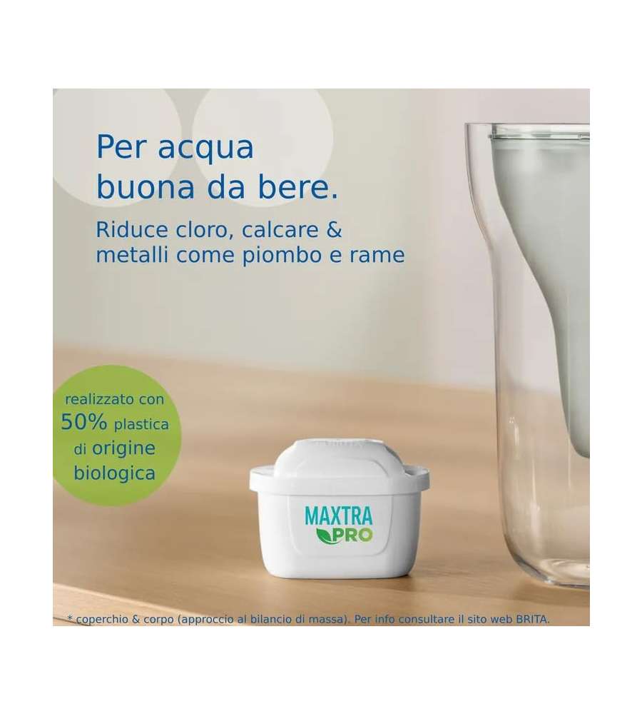 Descrizione: Filtri Brita Maxtra Pro, set da 3, per 450 litri totali di acqua fresca. Riduce cloro, calcare e metalli pesanti. Garantisci un'acqua pura e buona da bere, ideale per ogni uso quotidiano.