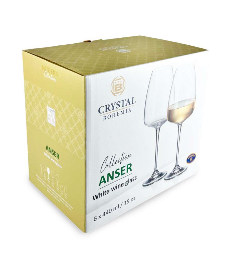 Descrizione: Set di 6 calici in vetro Crystal da 440 ml, perfetti per degustare vino bianco. Design elegante che ossigena il vino, esaltando gli aromi. Ideali per ogni occasione.
