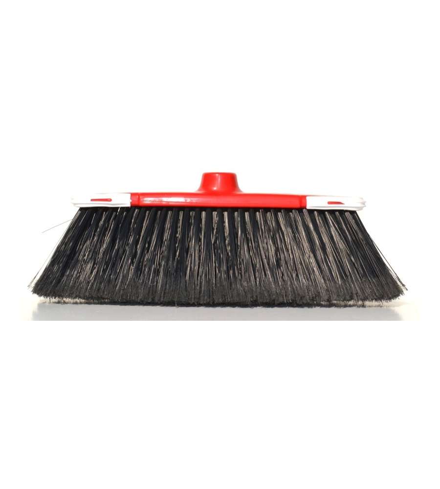 Scopa domestica antiurto con asticella in polipropilene, paracolpi in PVC e fibre sintetiche. Ideale per la pulizia di interni, dimensioni 35 cm. Facile da manovrare, resistente e disponibile in colori assortiti.Indicato per: