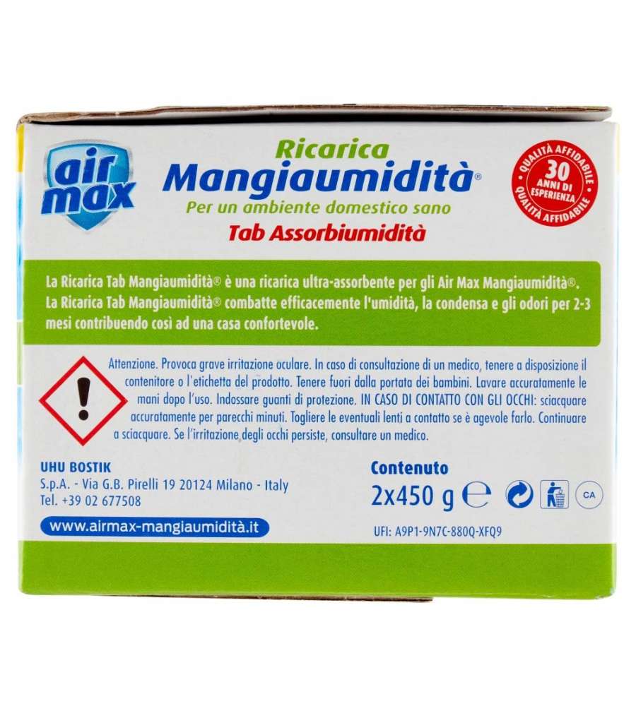 Descrizione: Ricariche Air Max 2 tab neutra da 450 g, ideali per combattere l'umidità in casa. Efficacia immediata e ottimo assorbimento, adatte a tutti gli apparecchi Air Max. Sicure e pratiche!
