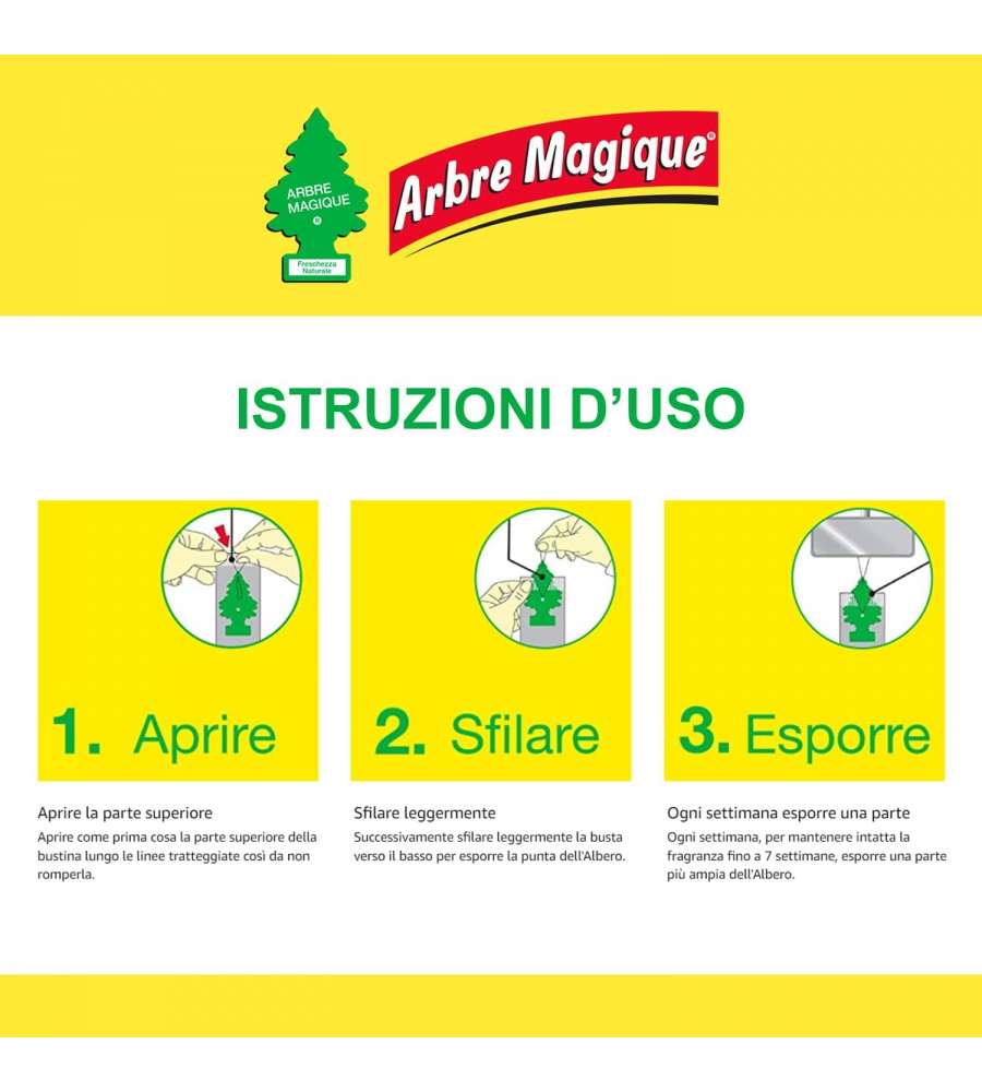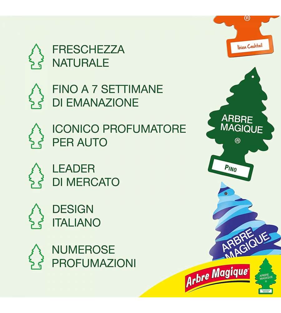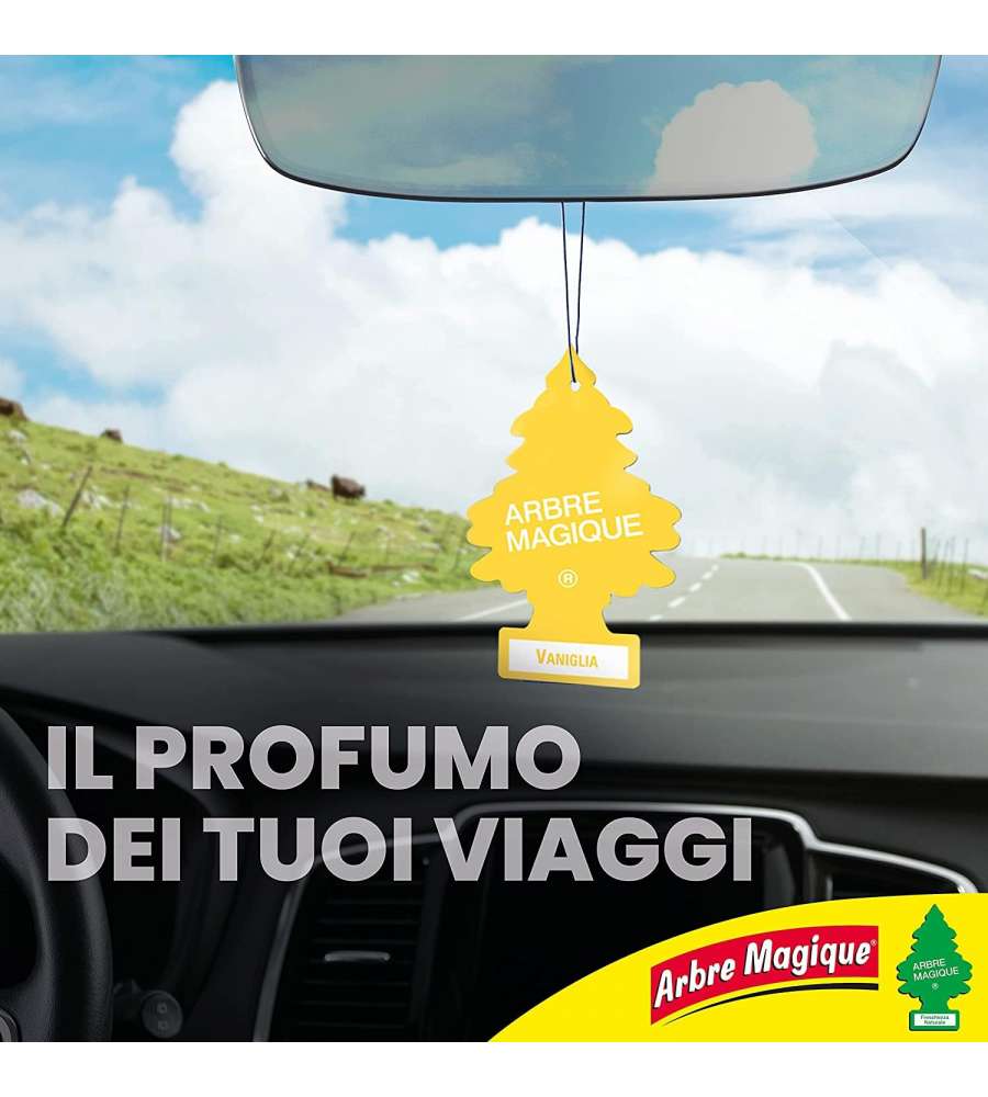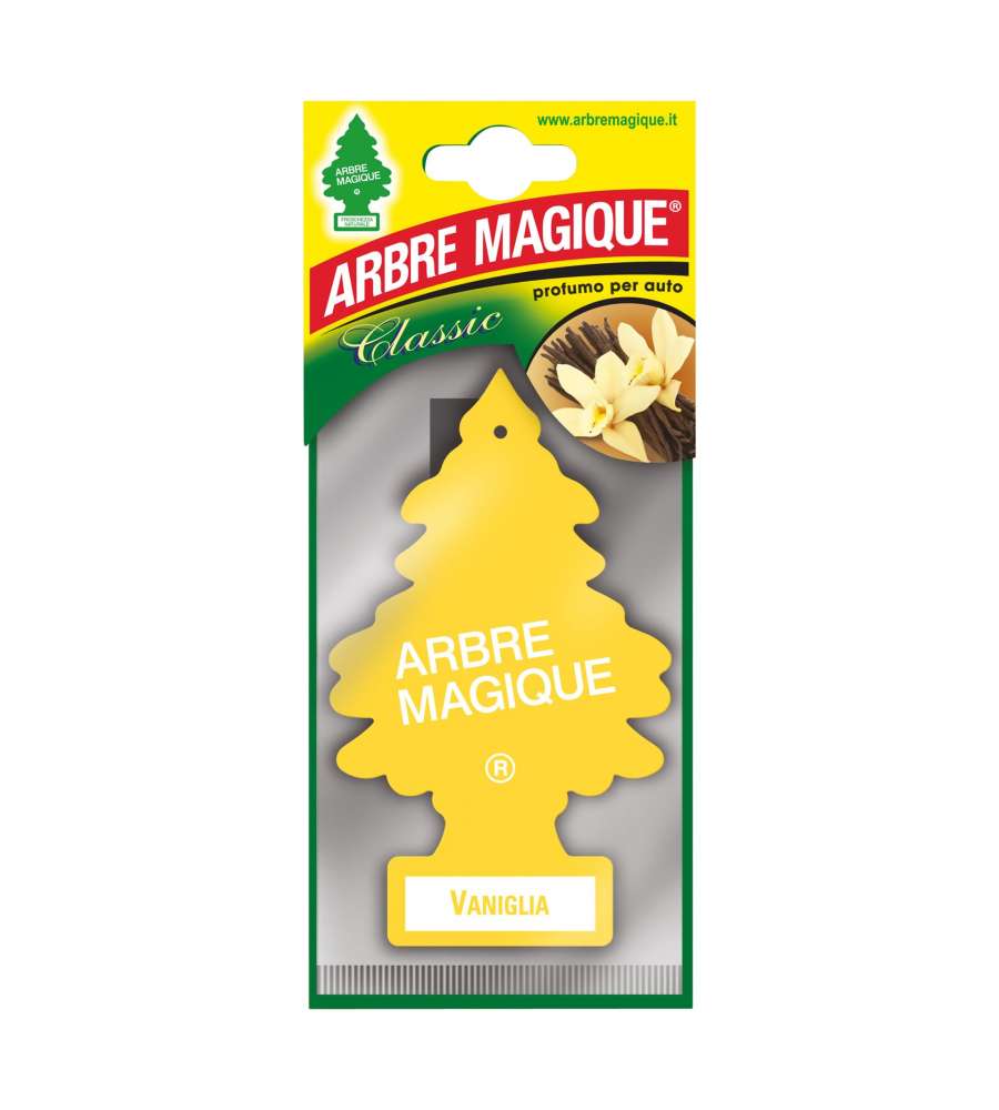 Descrizione: Arbre Magique Classic è un profumatore per auto alla fragranza Vaniglia, un mix dolce di vaniglia caramellata, ananas e cocco. Garantisce freschezza fino a 7 settimane. Made in Italy!