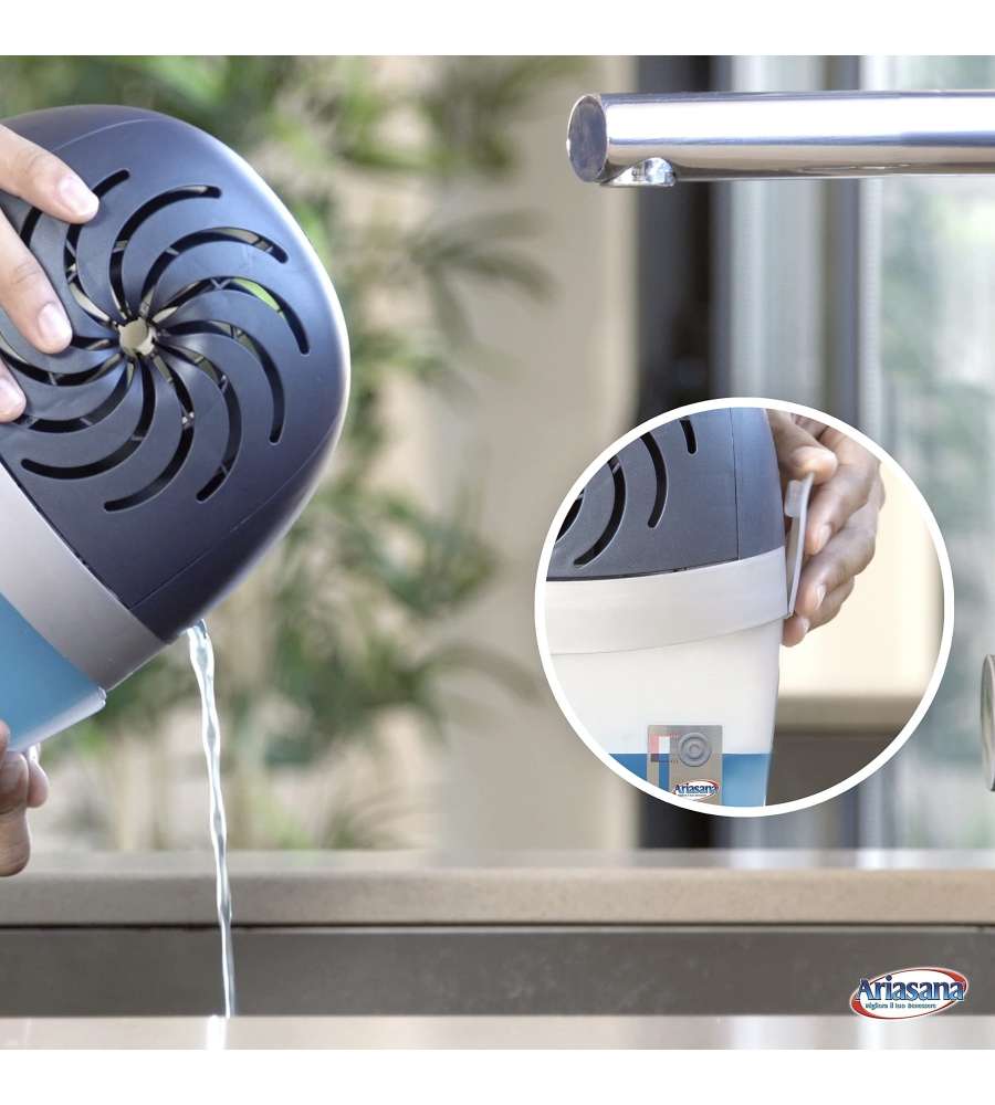 Descrizione: Ricarica Ariasana per deumidificatori: confezione da 3 x 450g di cristalli assorbenti ultra-efficaci per combattere l'umidità in ambienti fino a 55 m³. Formula ecosostenibile con agenti anti-odore. Universali.