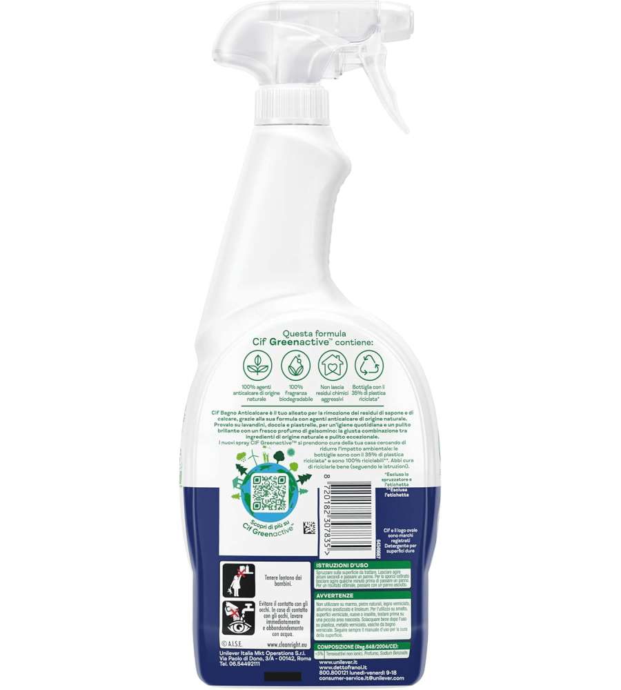 Il Cif Spray Detergente Bagno Anticalcare è la soluzione perfetta per chi desidera un bagno sempre pulito e profumato. Grazie alla sua formula innovativa, questo detergente non solo rimuove efficacemente il calcare e i residui di sapone, ma lo fa in modo ecologico, rispettando l'ambiente. La freschezza della profumazione al gelsomino rende ogni utilizzo un'esperienza piacevole, trasformando la pulizia in un momento di cura per la propria casa. Ideale per lavandini, rubinetti e piastrelle, è estremamente facile da applicare e permette di ottenere risultati brillanti senza sforzo. Scegliere Cif significa optare per un prodotto che unisce efficacia, praticità e rispetto per la natura.