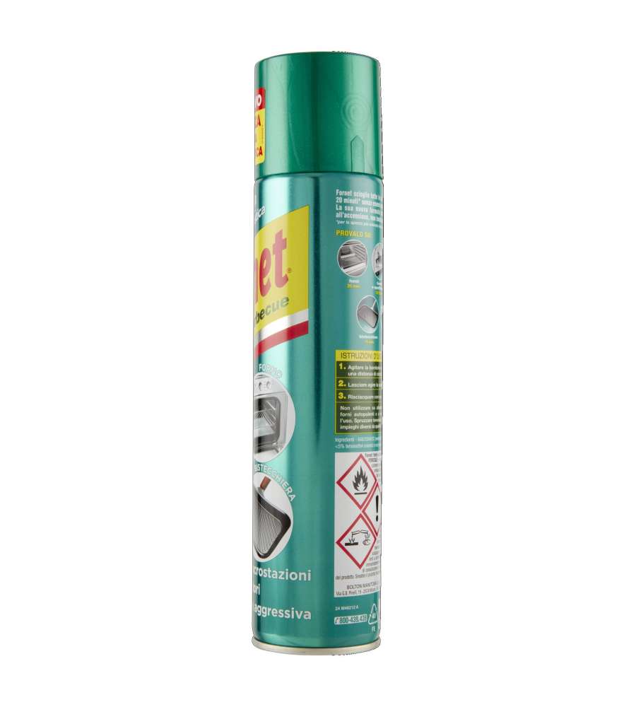 Descrizione: Fornet Sgrassatore Spray per Forni e Barbecue 300ml, efficace su superfici fredde. Scioglie incrostazioni in 20 minuti, senza soda caustica e con profumo di limone. Pulizia profonda e delicata!