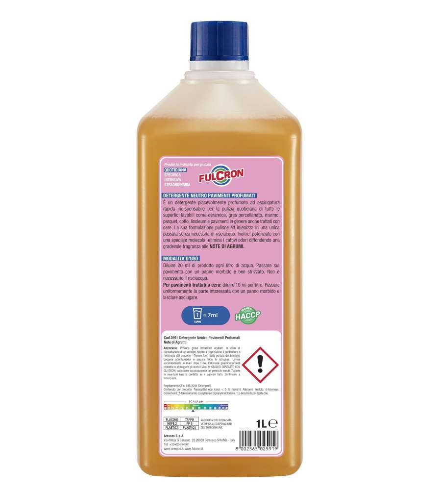 Descrizione: Detergente neutro universale 1L con profumo di agrumi, ideale per la pulizia di ceramica, parquet e pavimenti in genere. Asciugatura rapida e senza risciacquo, igienizza ed elimina odori sgradevoli.