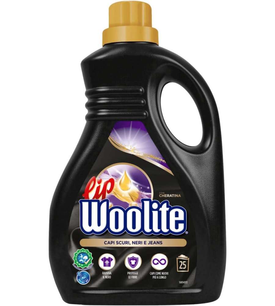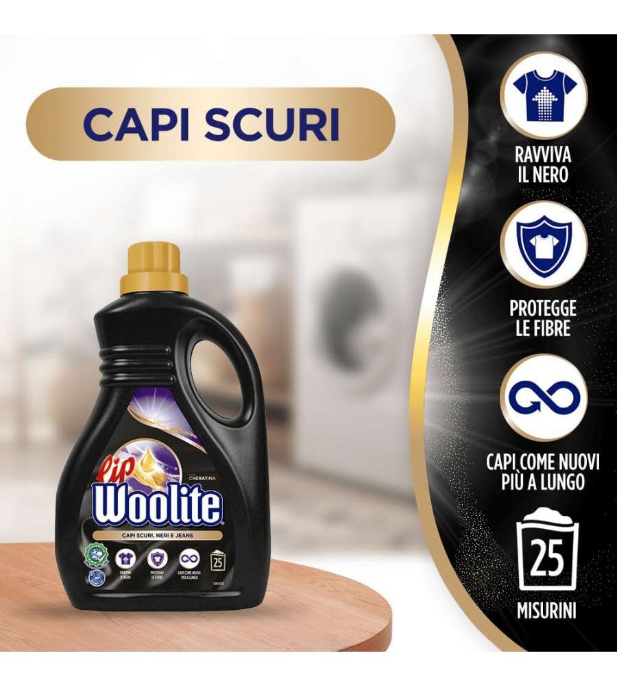 Descrizione: Scopri il Lip Woolite Detersivo Liquido per Capi Scuri, Neri e Jeans. Con 1500 ml per 25 lavaggi, protegge i colori e cura i tessuti con cheratina. Ideale per lavatrice e a mano.