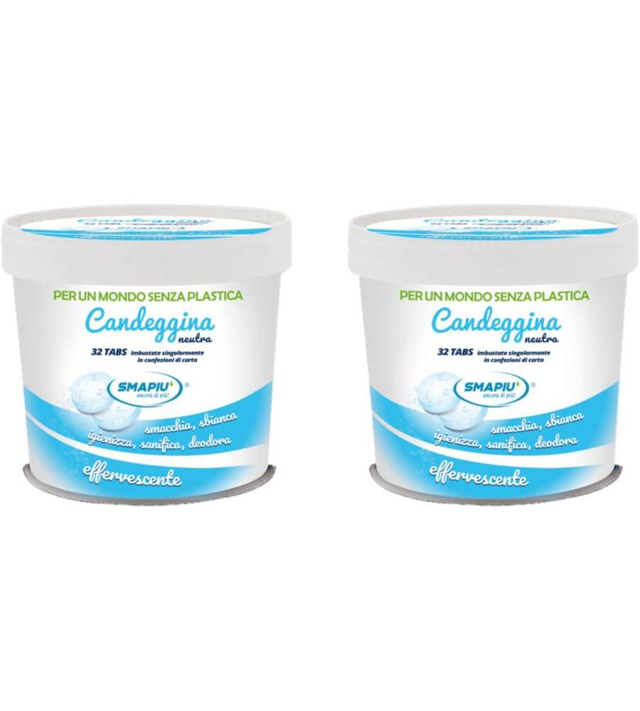 Descrizione: Candeggina in pastiglie SMAPIU' da 32 Tabs: equivalente a 5 litri di candeggina liquida, ecologica e neutra. Facile da trasportare, riduce plastica e inquinamento per una pulizia sostenibile.