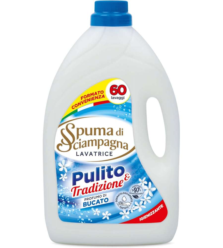 Descrizione: Detersivo liquido Spuma di Sciampagna al Marsiglia, 3000 ml per 60 lavaggi. Formula dermatologicamente testata, biodegradabile e senza profumo. Ideale per macchie e tessuti delicati. 100% italiano.