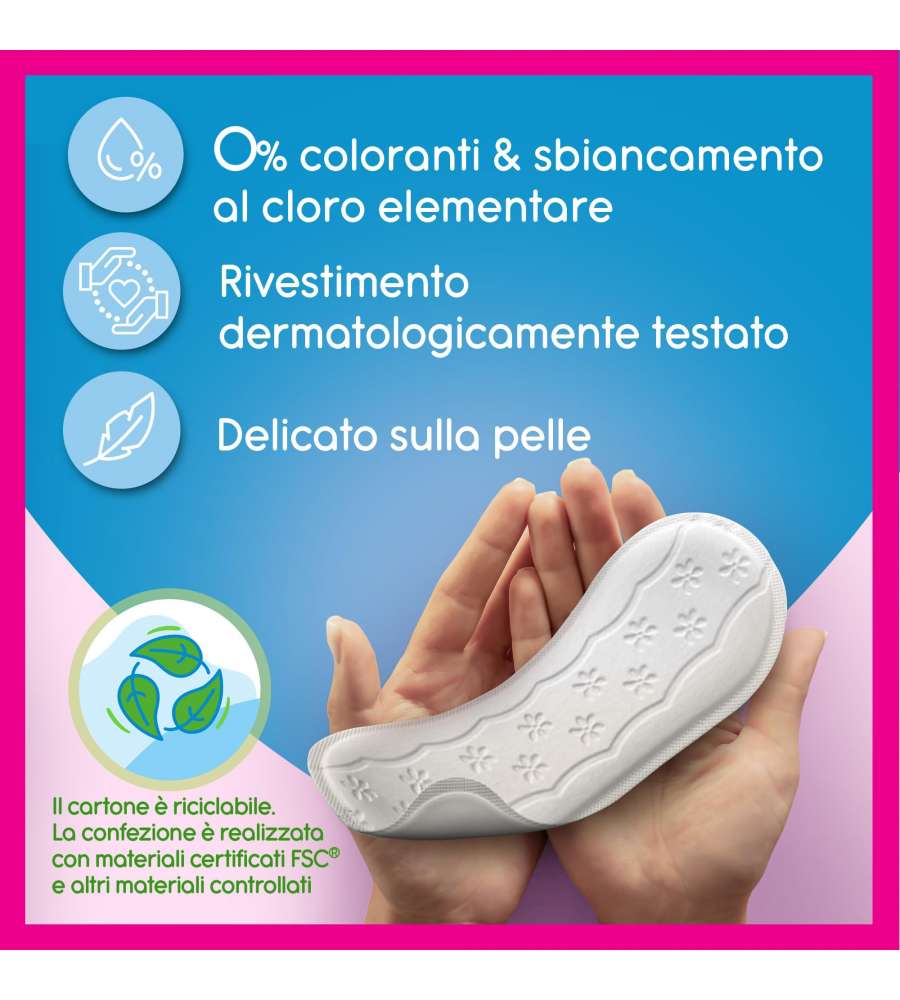 Salvaslip ultra sottili con 4 strati traspiranti, profumazione Floral Bouquet. Comfort e vestibilità perfetta, dermatologicamente testati, senza coloranti. Confezione da 20 pezzi, ideali per l'igiene intima quotidiana.Essenza: