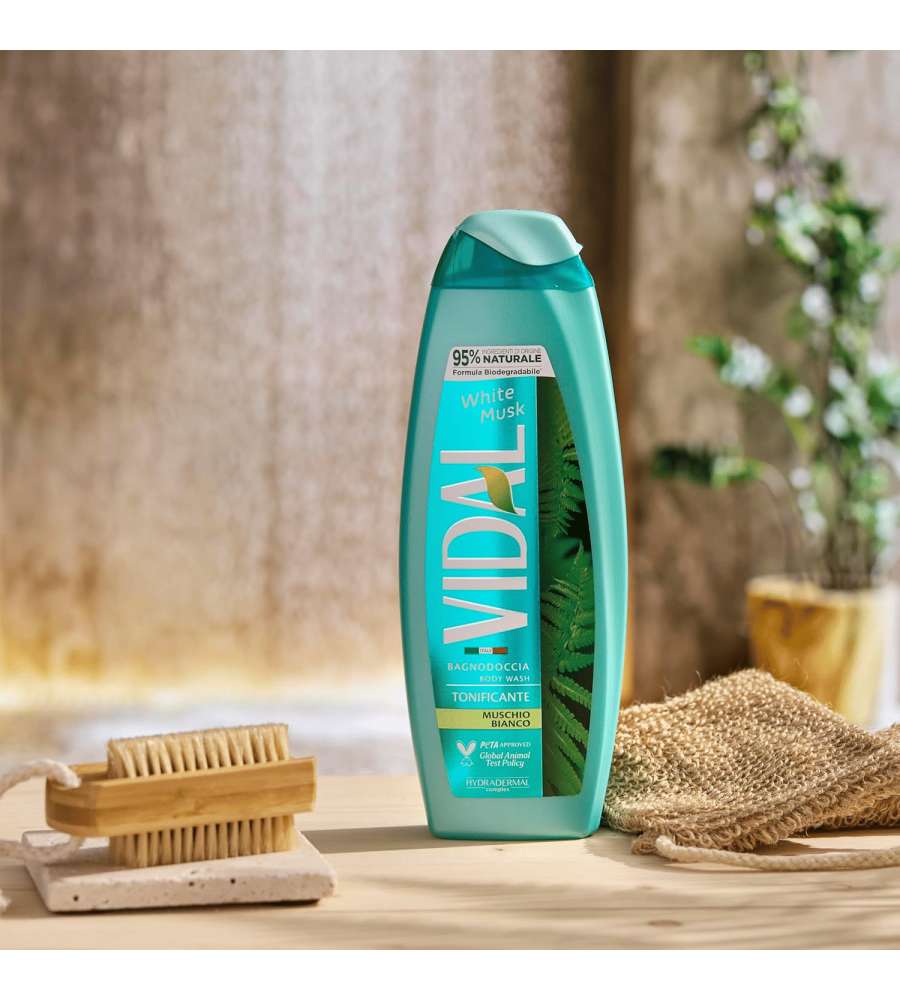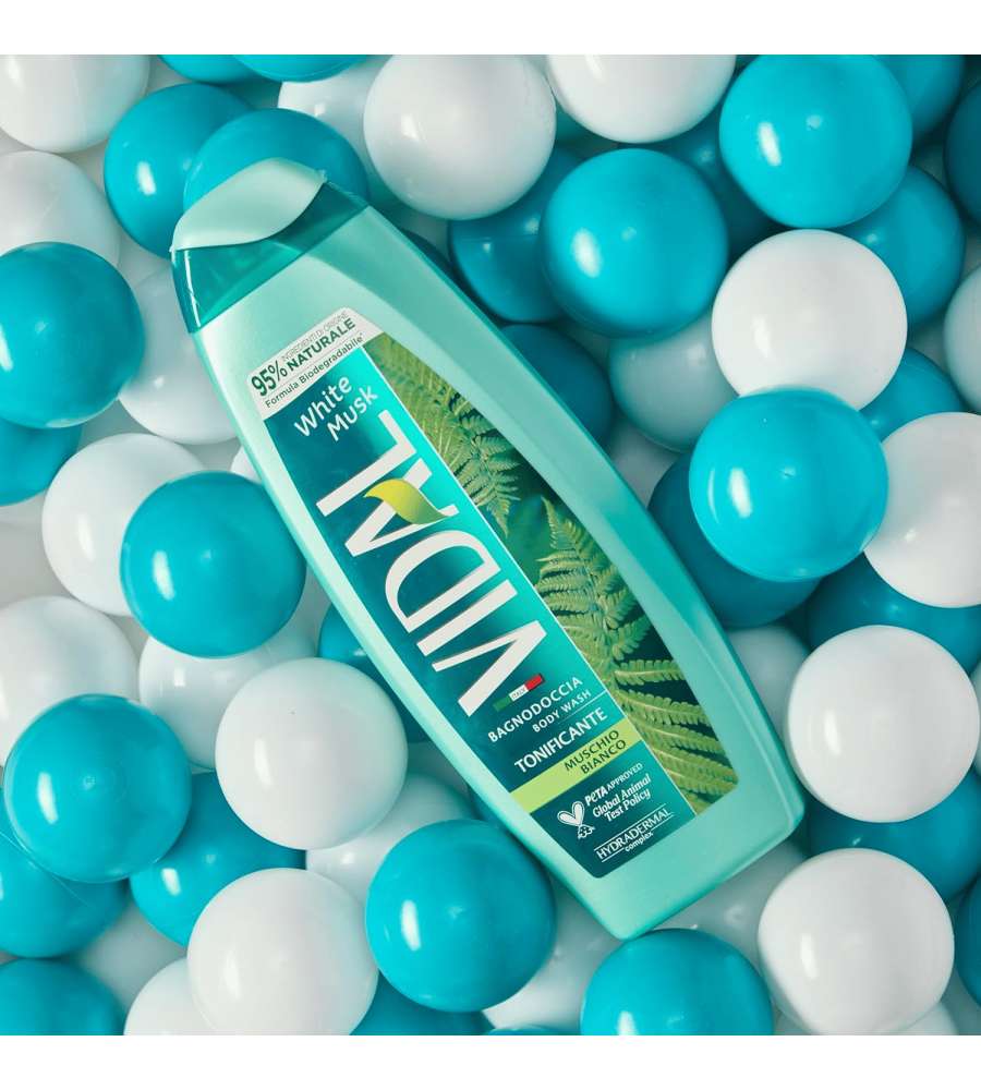 Il Docciaschiuma VIDAL Muschio Bianco è la scelta ideale per chi desidera una pulizia profonda senza sacrificare la delicatezza sulla pelle. Grazie alla sua formula tonificante e alla presenza di ingredienti naturali, questo prodotto non solo deterge, ma idrata e nutre la pelle, rendendola morbida e luminosa. La fresca fragranza di Muschio Bianco avvolge i sensi, trasformando il momento della doccia in un'esperienza rigenerante. Perfetto per un uso quotidiano, si consiglia di applicarlo direttamente sulla pelle umida, massaggiando delicatamente per un effetto ottimale.