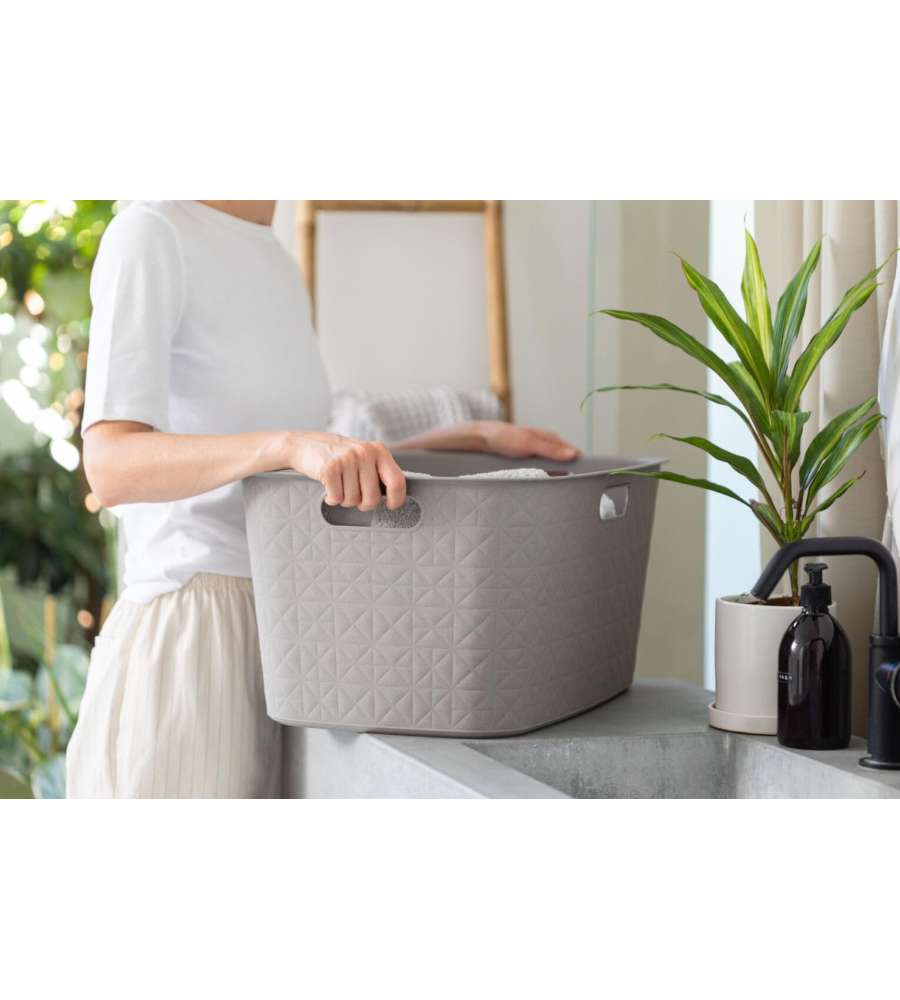 Descrizione: Cesta portabiancheria Softex tortora Keter, elegante e funzionale. Con capacità di 45 litri e pratiche maniglie, ideale come contenitore multiuso. Dimensioni compatte: 39,7x59,4x27,4 h.