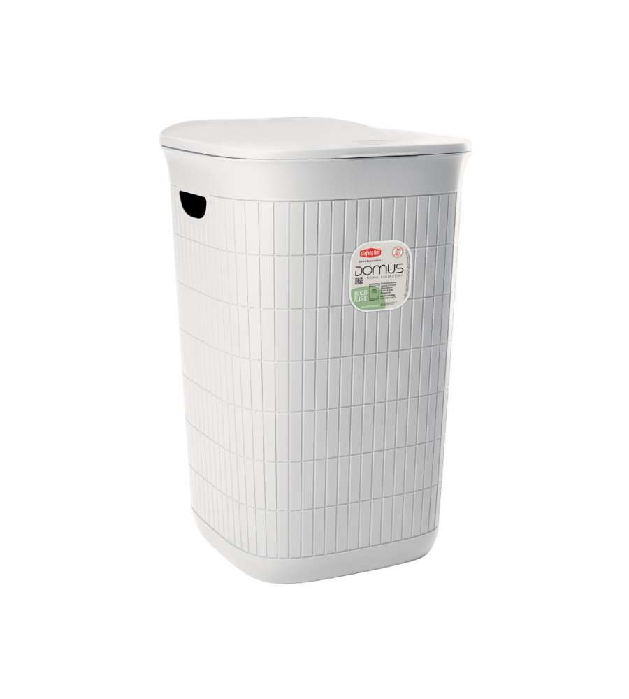 Il portabiancheria Domus da 50 litri unisce praticità, stile e rispetto per l’ambiente. Realizzato in plastica rigenerata di alta qualità, è una scelta sostenibile che contribuisce a ridurre l’impatto ambientale senza rinunciare all’eleganza. La sua forma compatta e il design lineare lo rendono perfetto per qualsiasi ambiente domestico, dal bagno alla lavanderia. Dotato di prese laterali ergonomiche per un facile spostamento e di fessure sul retro che garantiscono la necessaria aerazione dei panni, il portabiancheria Domus è resistente, leggero e facile da pulire. Con la sua superficie a texture geometrica e la palette di colori neutri, si integra armoniosamente in ogni stile di arredamento, aggiungendo un tocco di modernità e funzionalità.