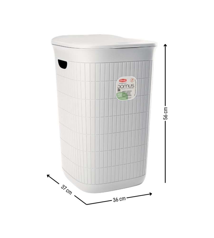 Descrizione: Scopri il Portabiancheria Domus colore Bianco Polvere 50L di Stefanplast: elegante, pratico e realizzato in plastica rigenerata. Ideale per bagno e lavanderia, garantisce aerazione e facilità di trasporto.