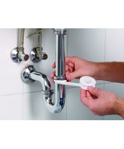 Si avvolge intorno al filo del sifone della doccia, il tubo del carico dell'acqua della lavatrice o lavastoviglie o qualsiasi altra giunzione tra tubi o tubature.