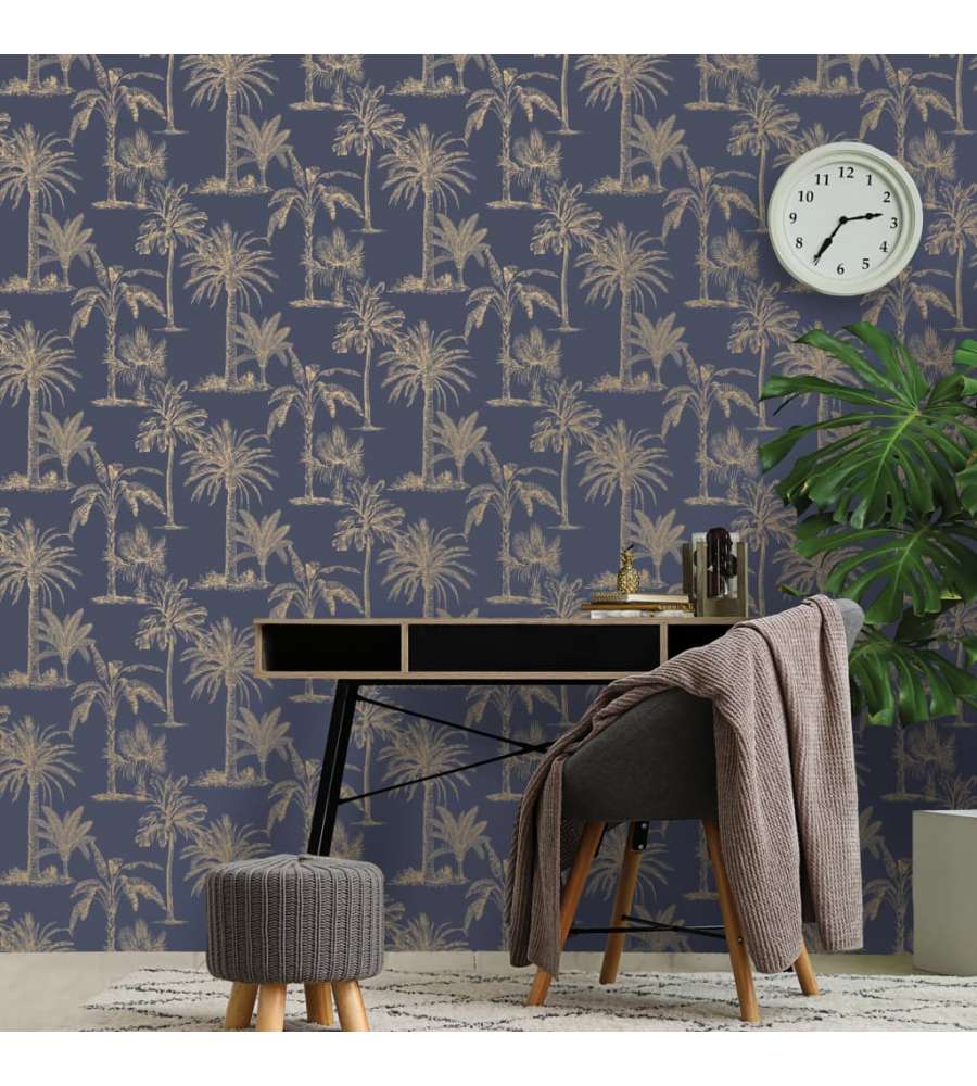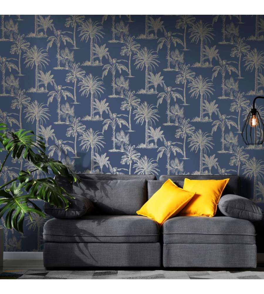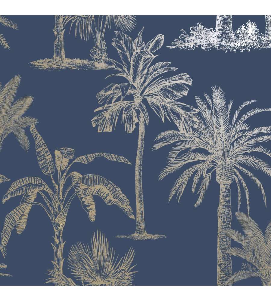Questa resistente carta da parati ha un bellissimo motivo tropicale con alberi in blu navy e argento, è resistente agli strappi e può essere rimossa con un agente sverniciante o a vapore per carta da parati senza danneggiare la pareteAltro 5: