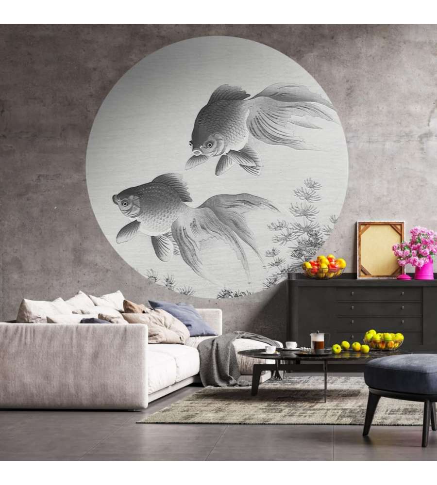 Questa carta da parati circolare Two Goldfish, che misura 190 cm, rappresenta una bellissima stampa e segue le ultime tendenze della decorazione muraleAltro 1:
